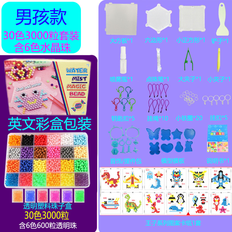 30-color 3000-piece set (including 6 colors of crystal beads, 600 pieces) for boys