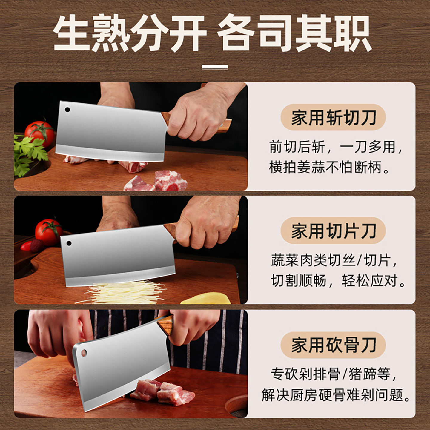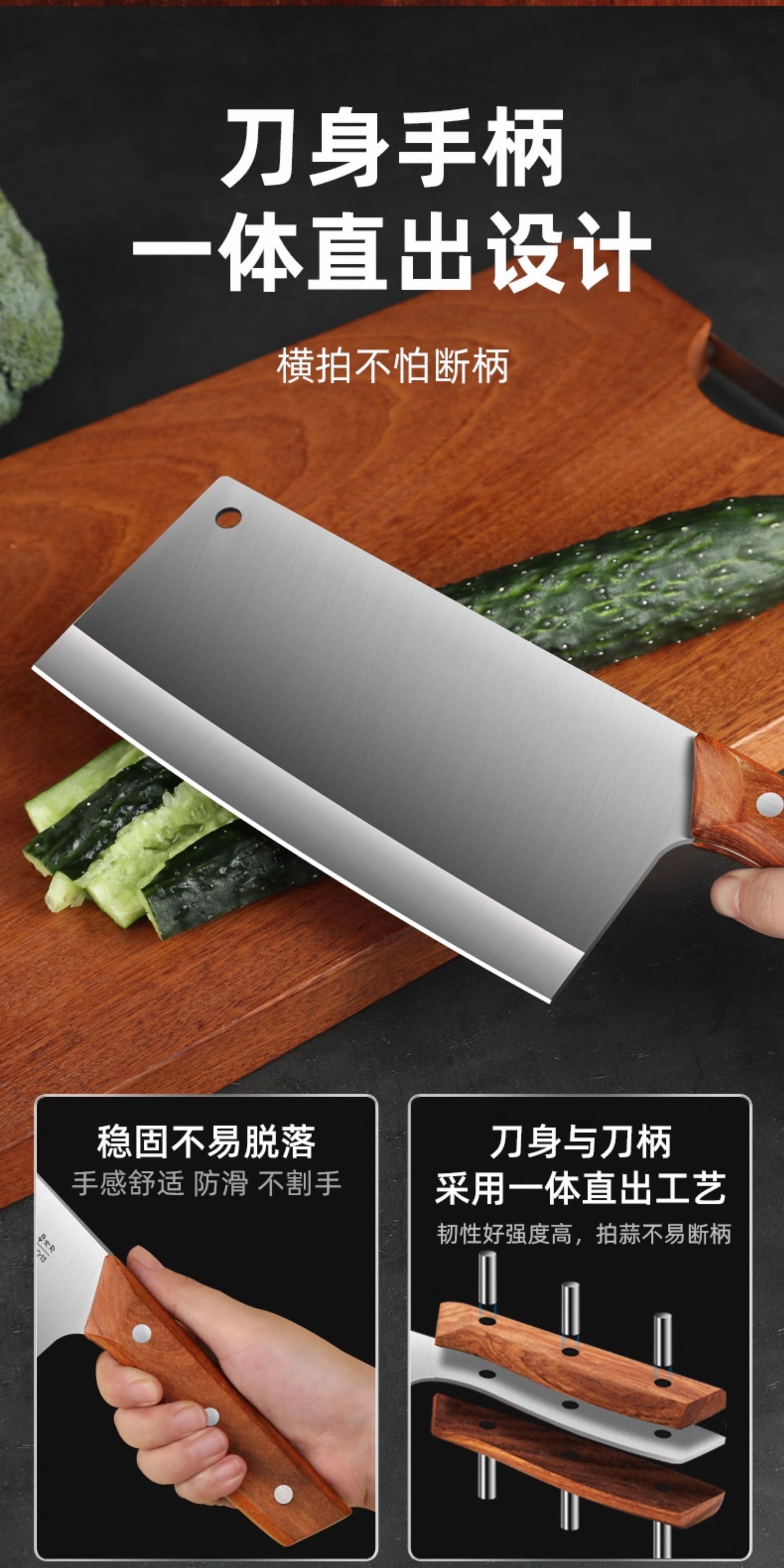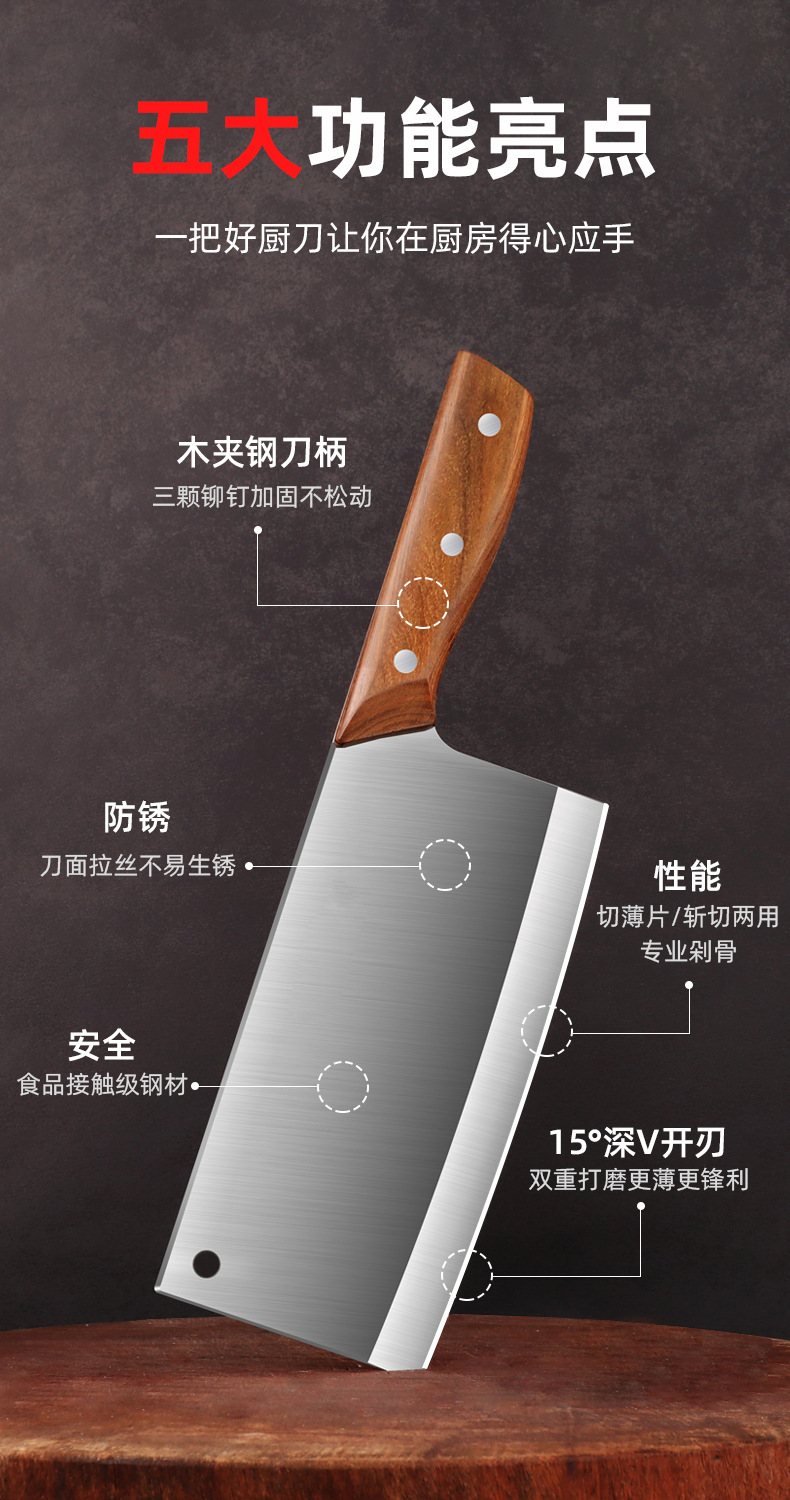 [red sandalwood wood grain] square head brushed kitchen knife