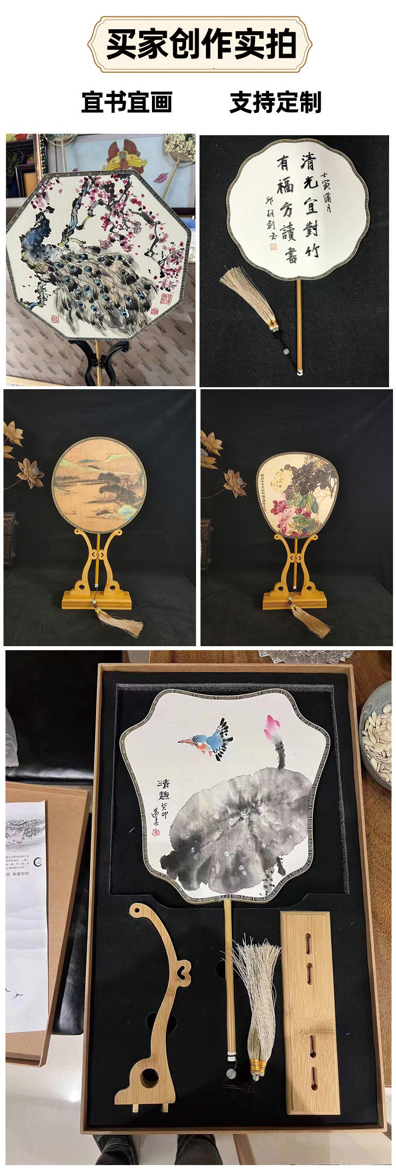 26cm round calligraphy paper temple fan