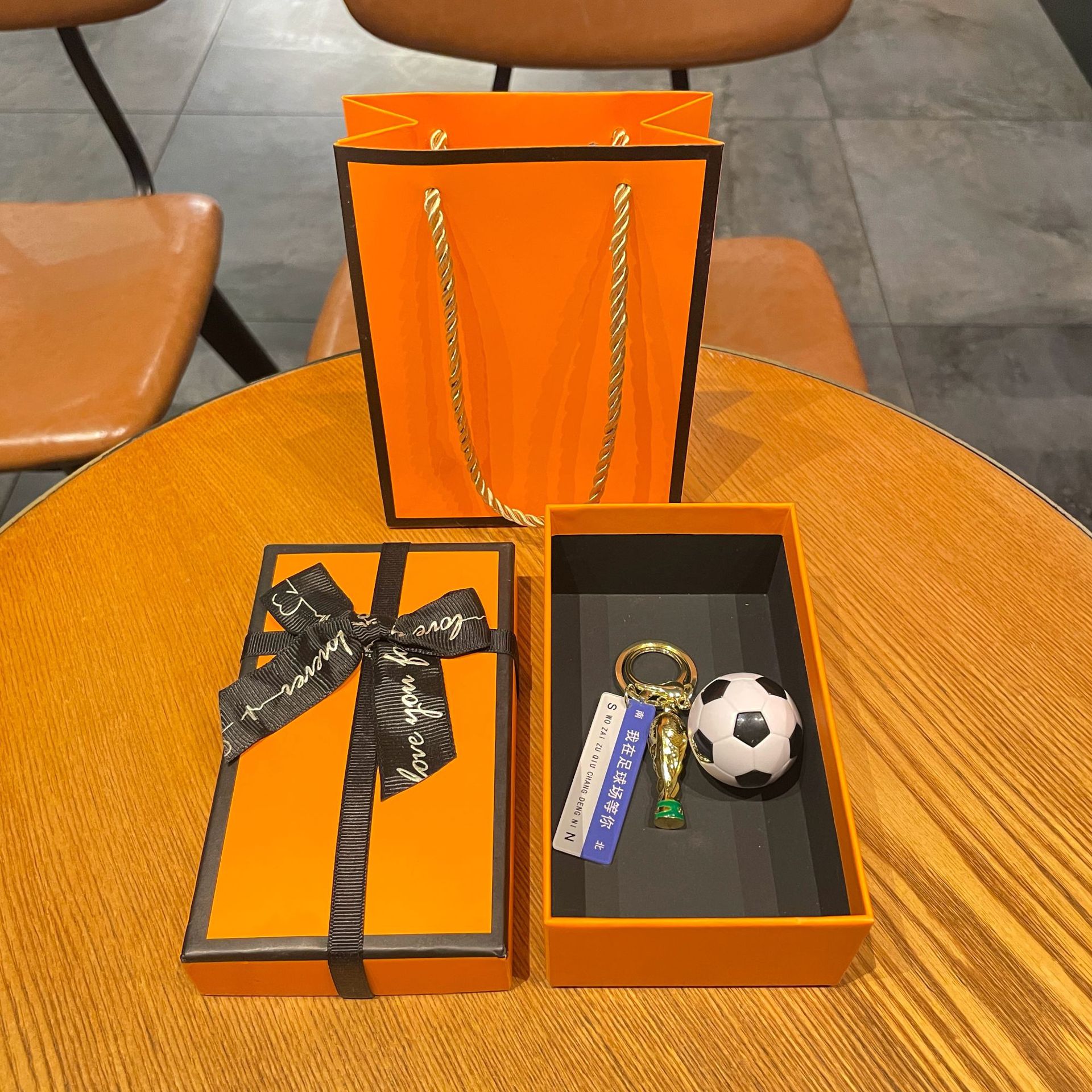 s6 golden buckle simulation football + trophy + i am waiting for you on the court + black miu wind rope + orange large size gift box