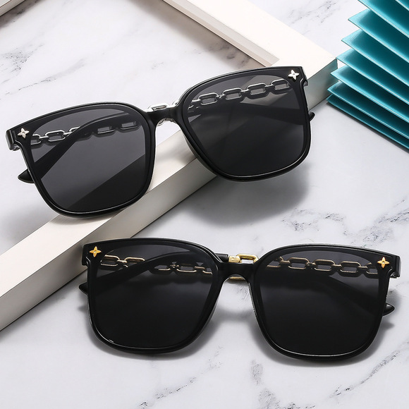 bright black frame, gray lenses