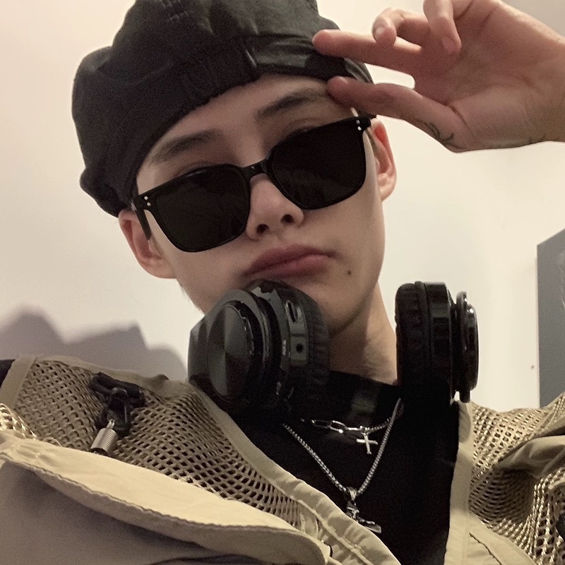 black frame blue lens