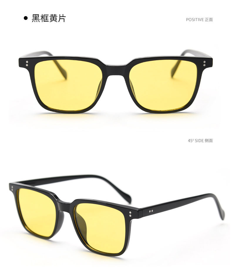 black frame, yellow lenses