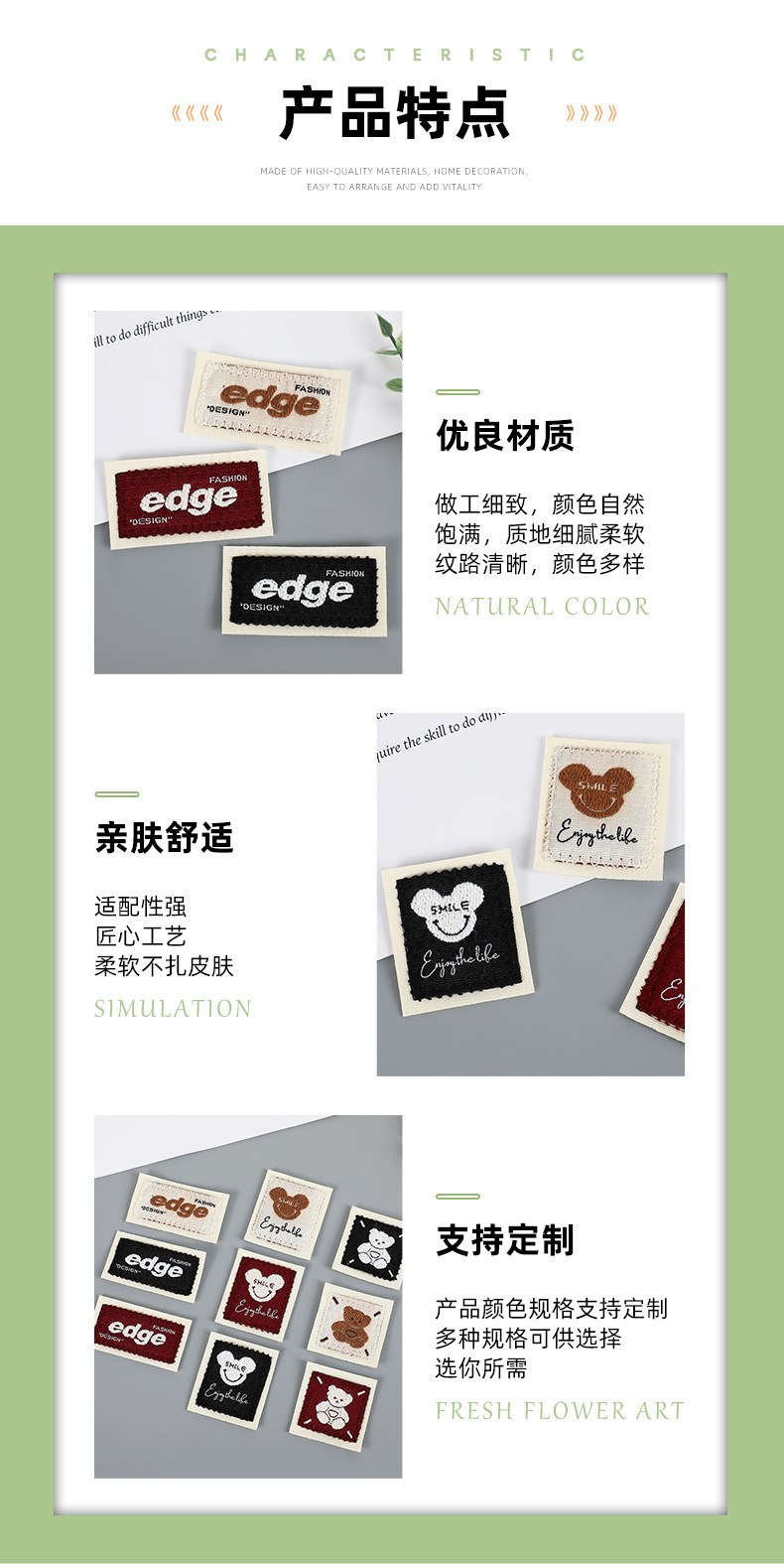 alphabet * cloth base * black * rectangular * 4*4.5cm