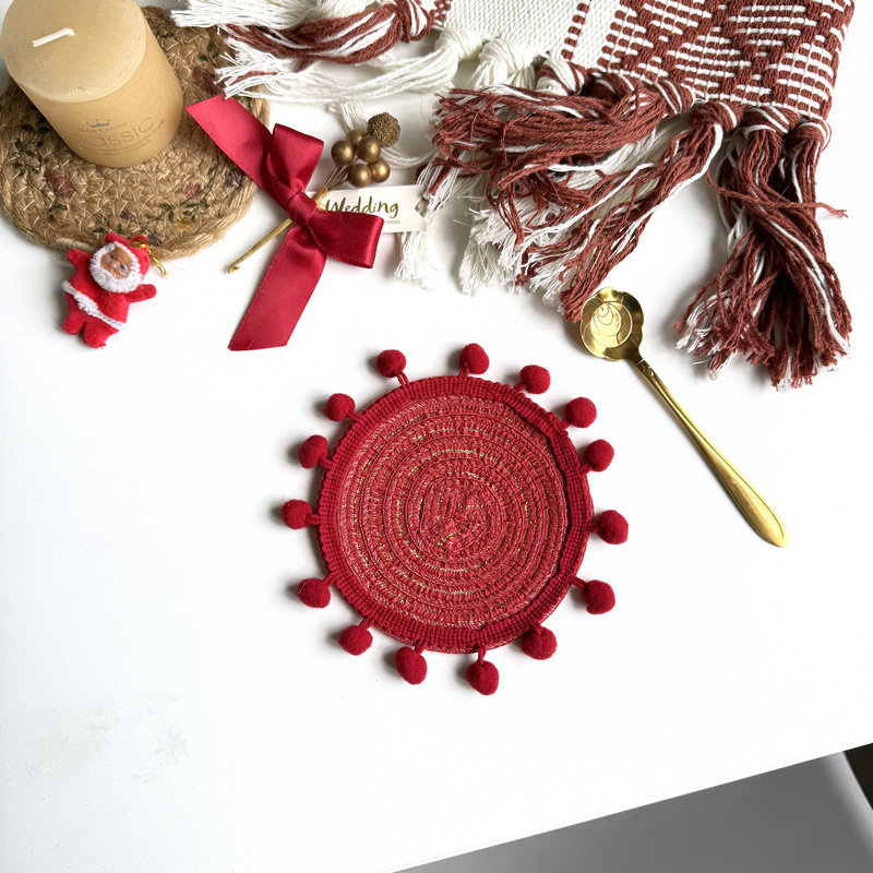 wool ball cotton yarn red.,13cm wool ball coaster red