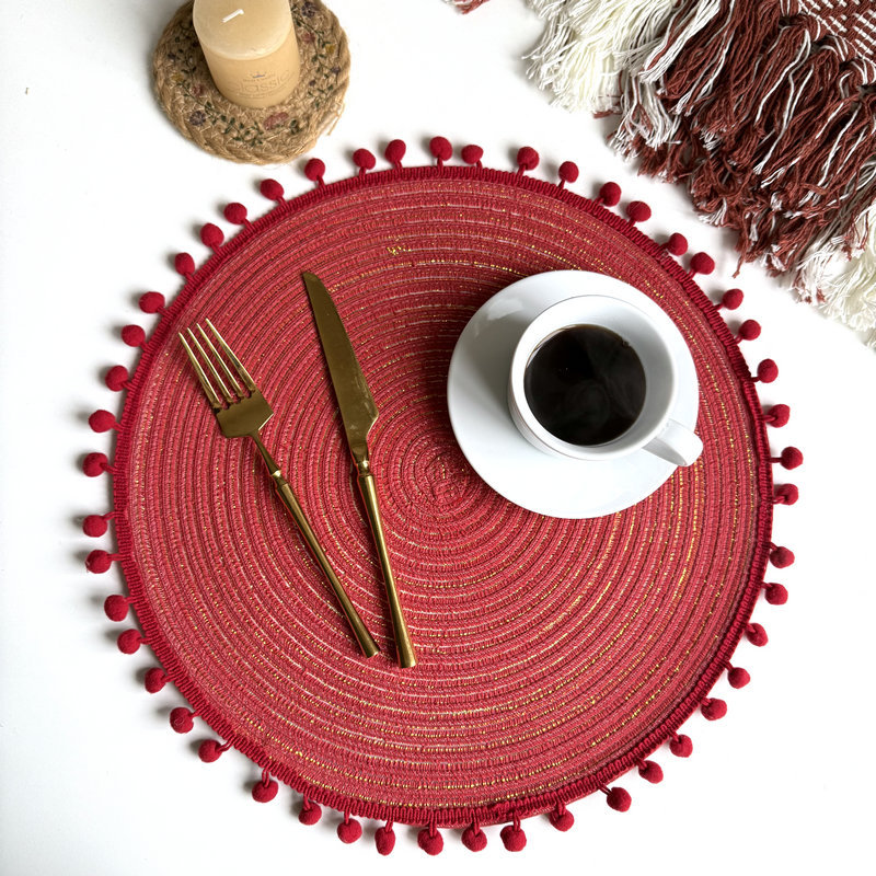 color: wool ball cotton yarn red.,13cm wool ball coaster red