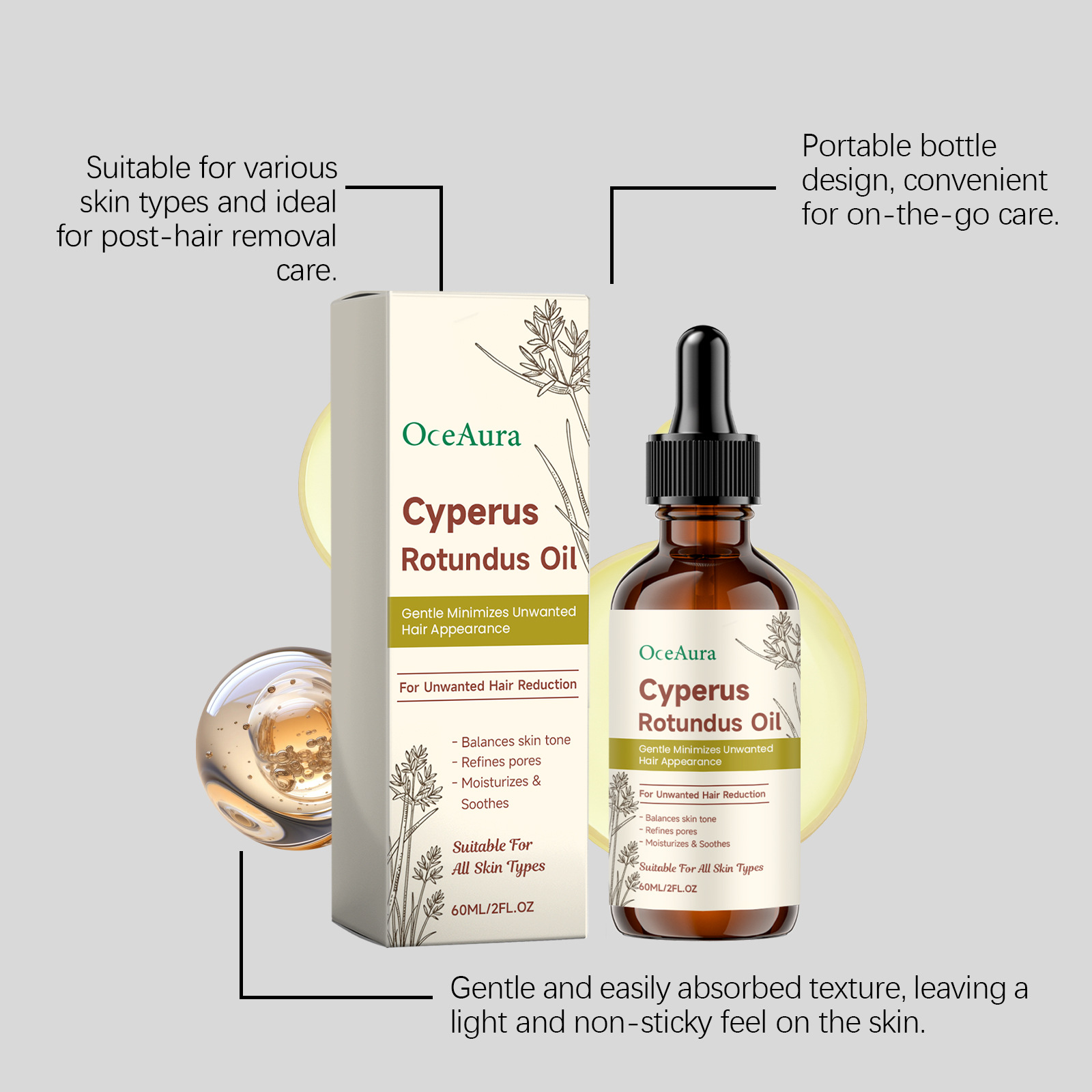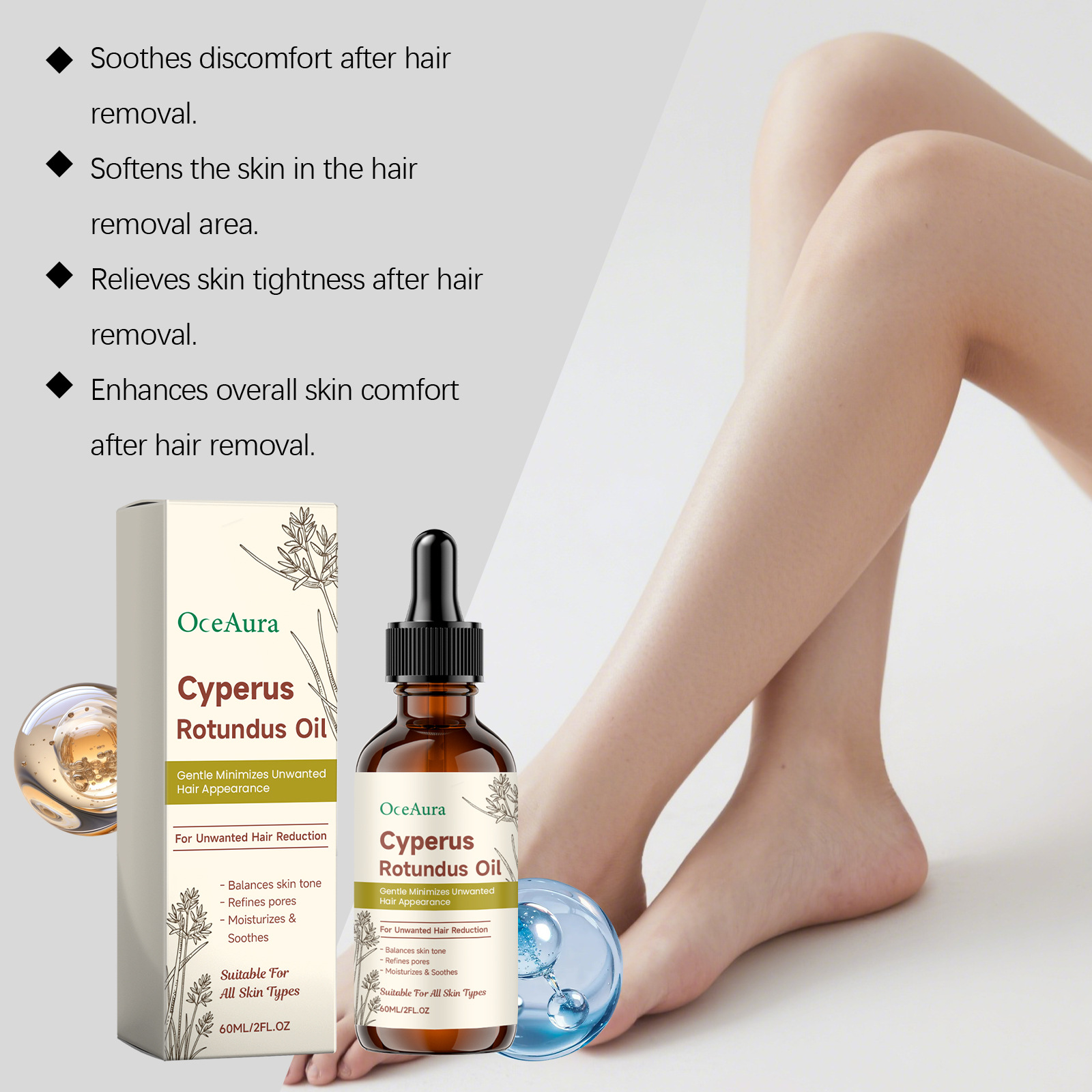 oceaura fragrance hair removal care essential oil gentle cleansing body skin soft daily moisturizing treatment oil