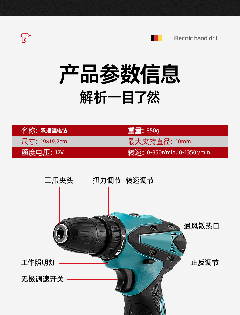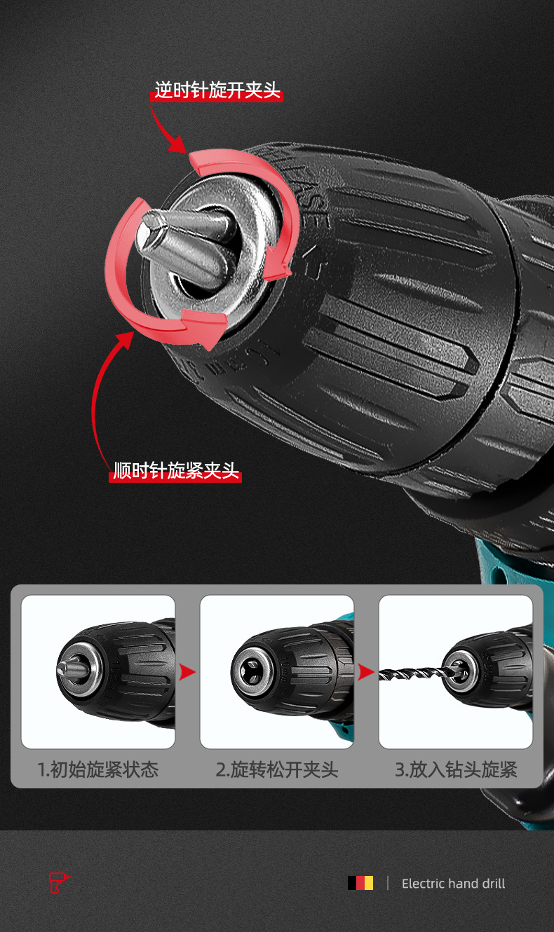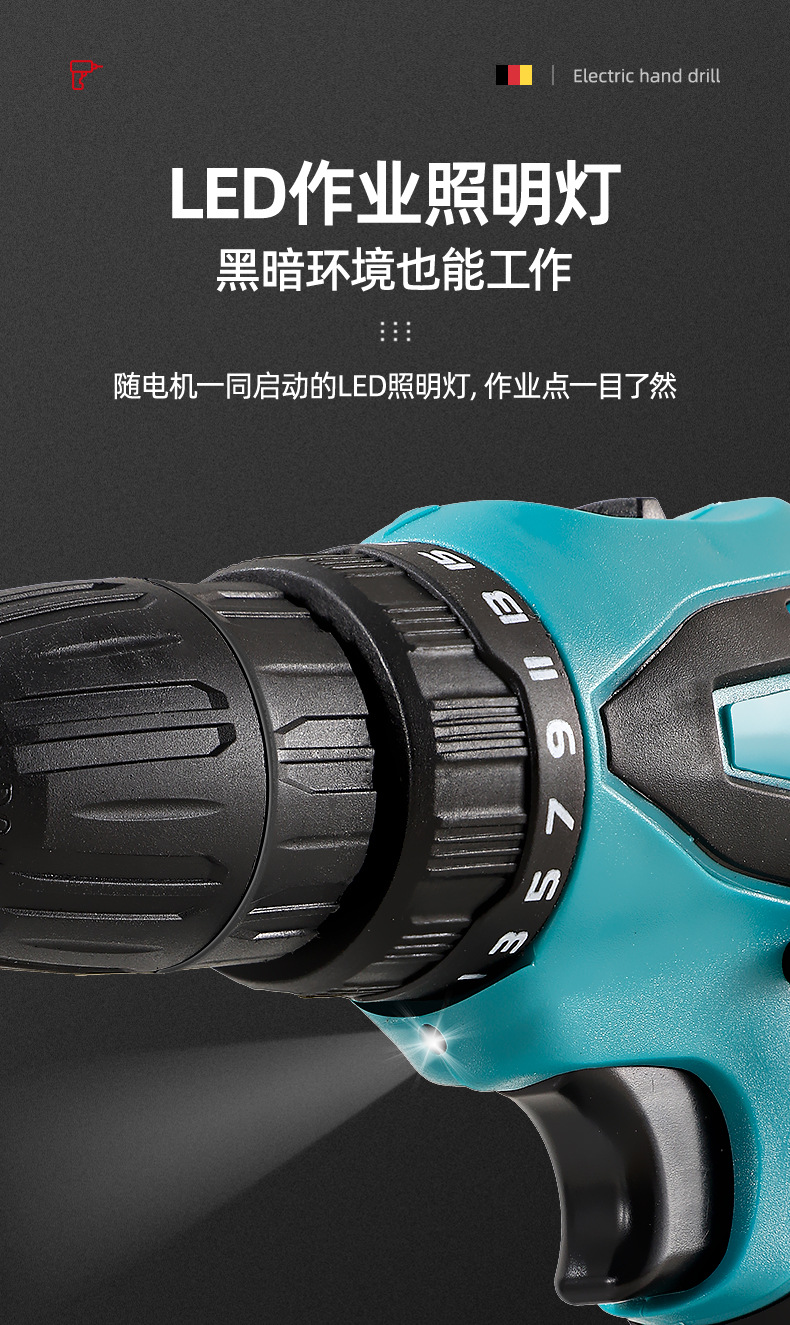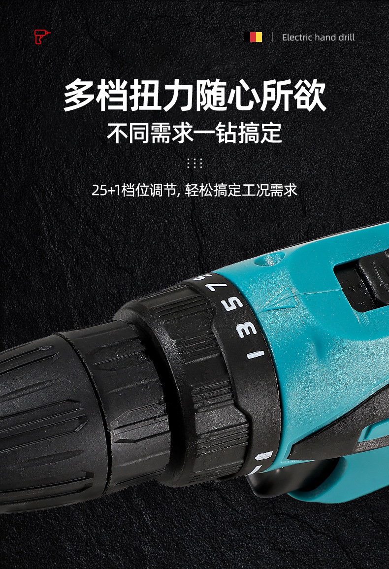 screwdriver + electric drill +3 batteries * 2-1300mah + american standard + drill * 8 + bit * 4 + gloves + glasses