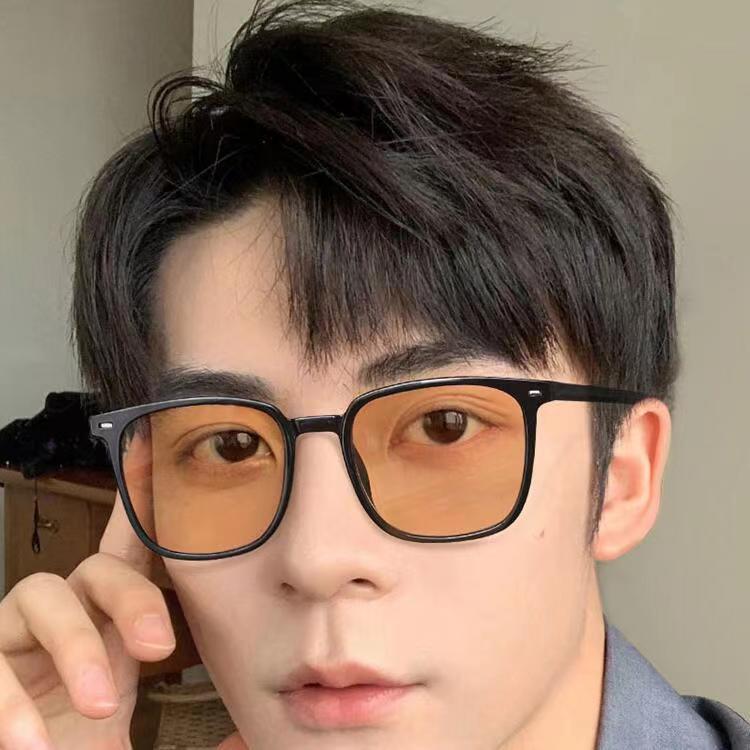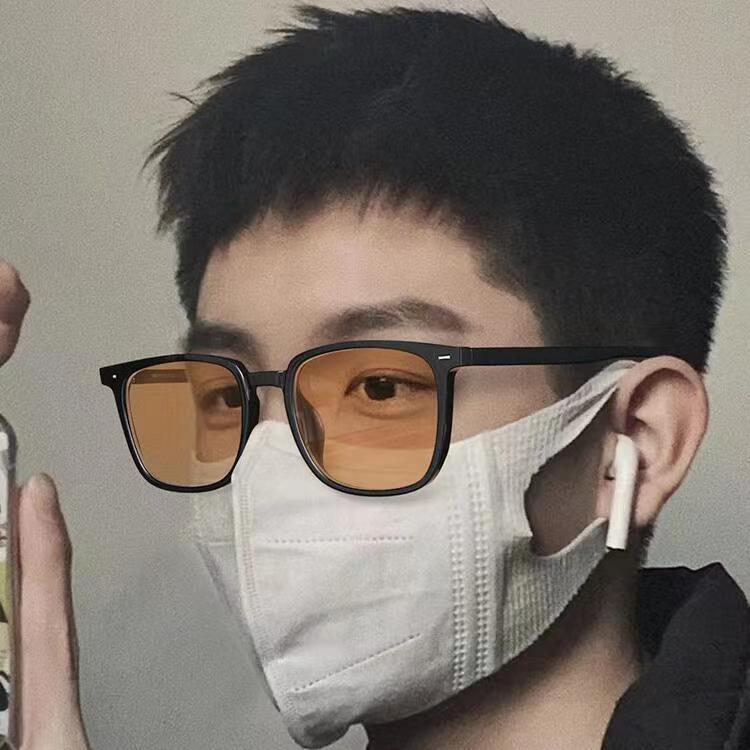 bright black frame, white lens