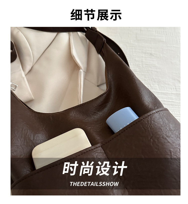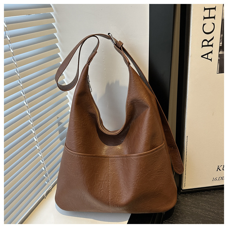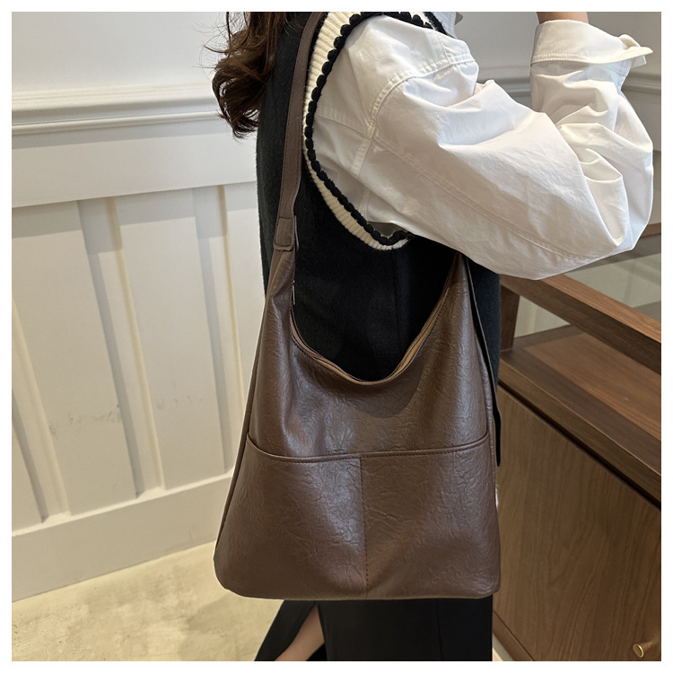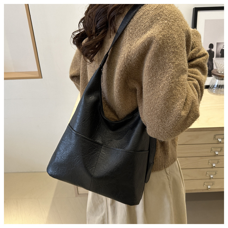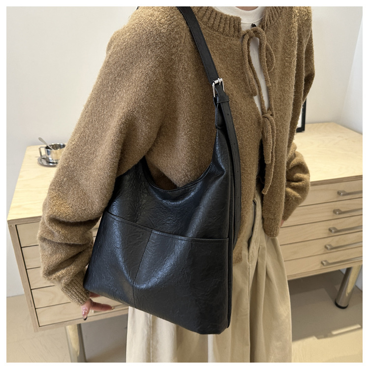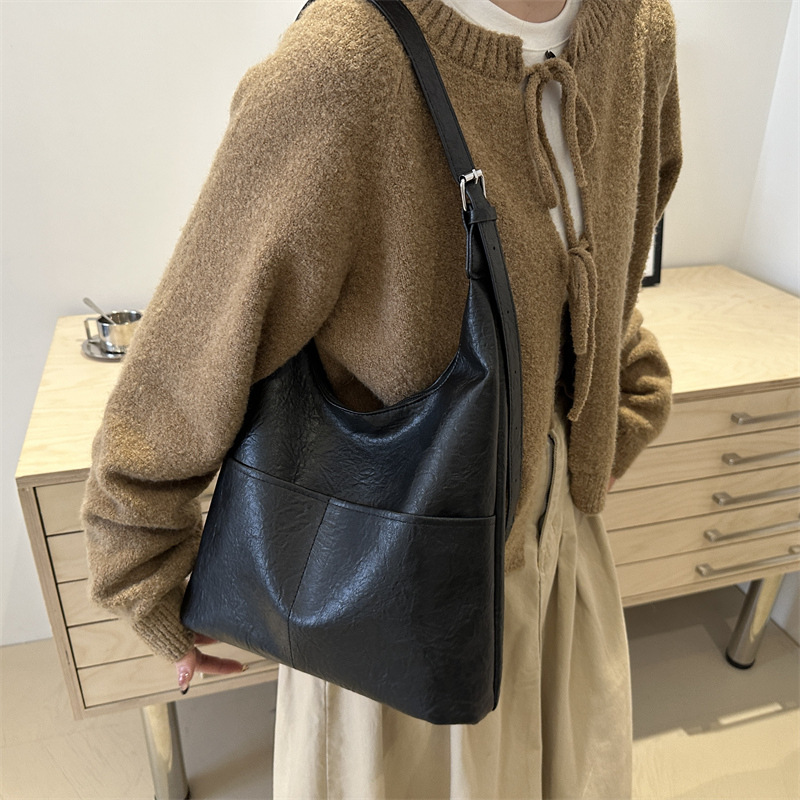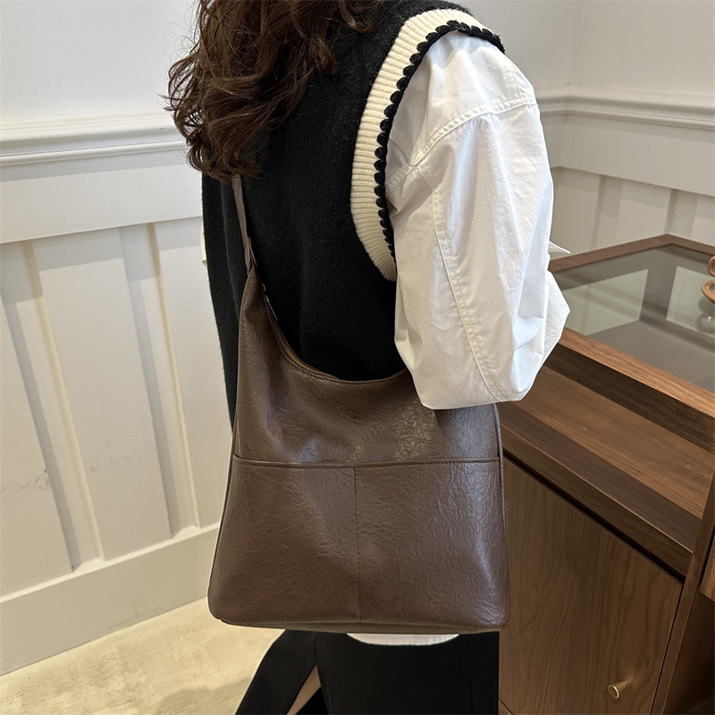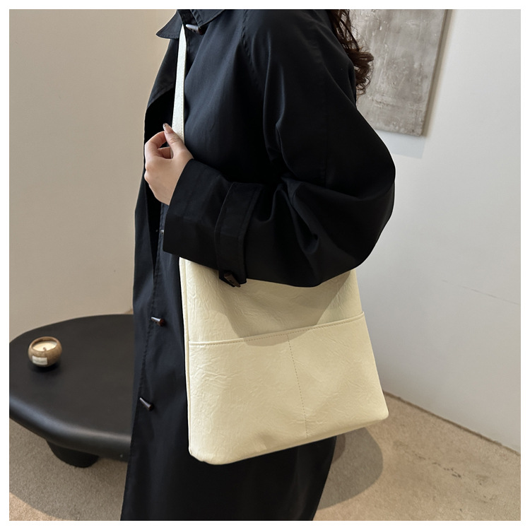 messenger bag retro solid color textured pu commute leisure shoulder bag simple versatile large capacity bag female cross border