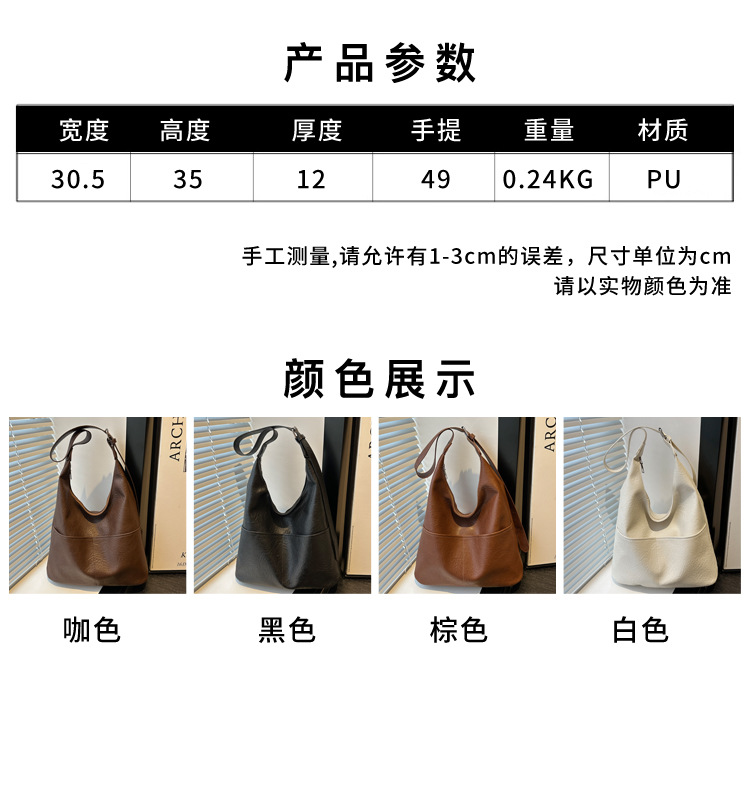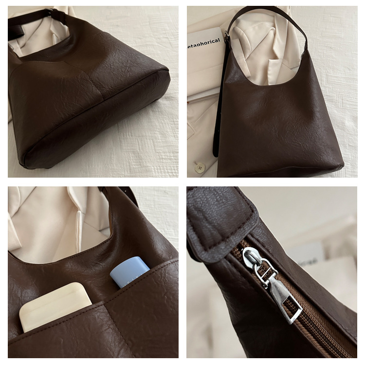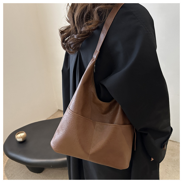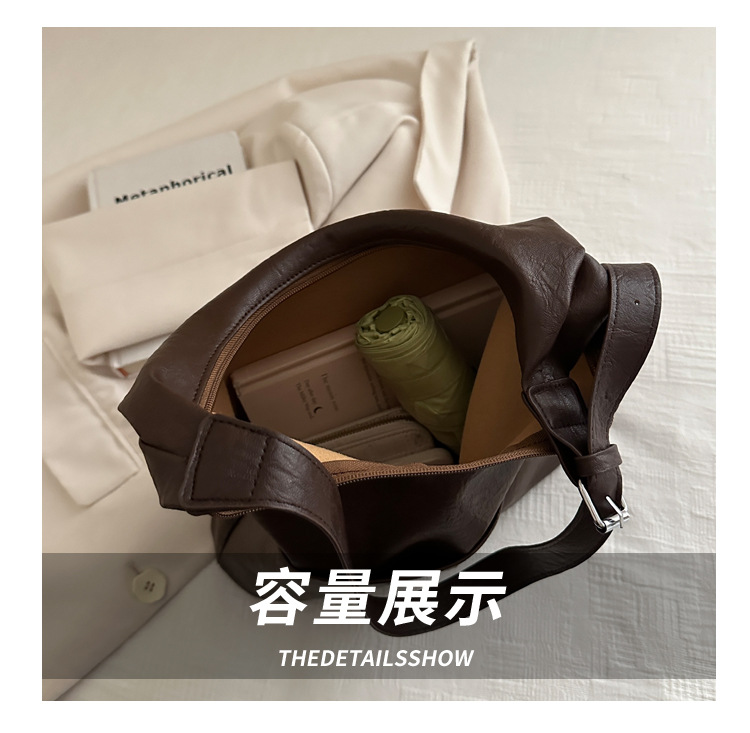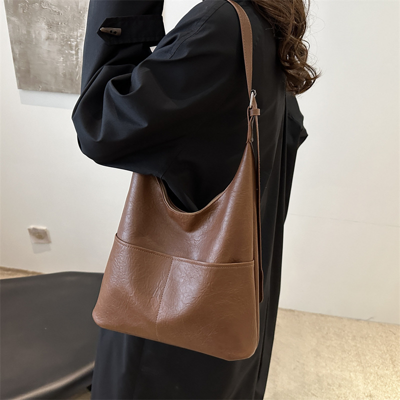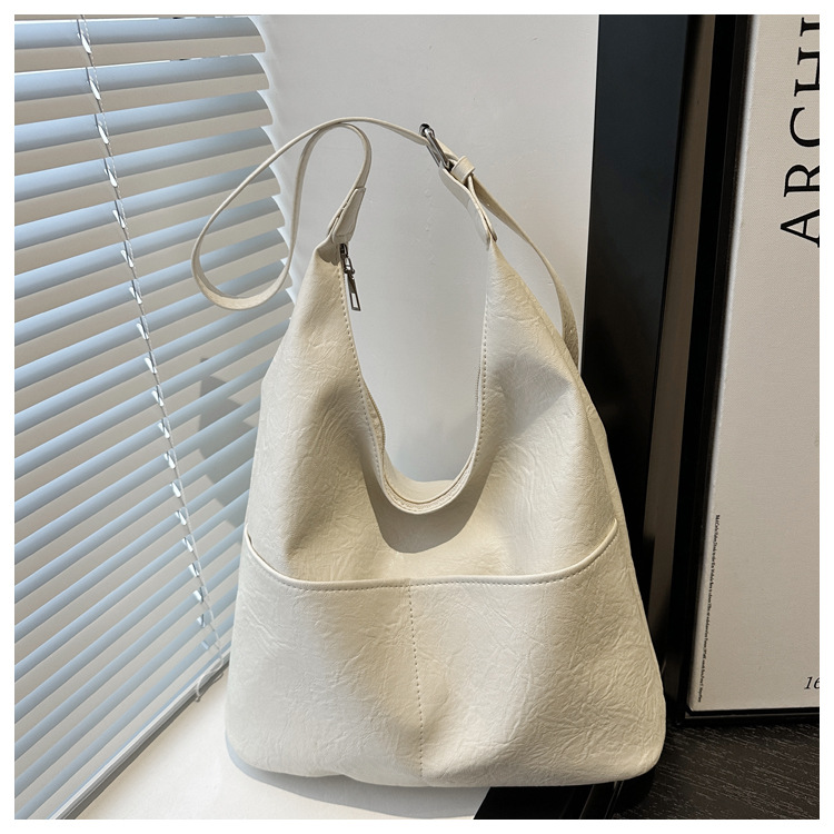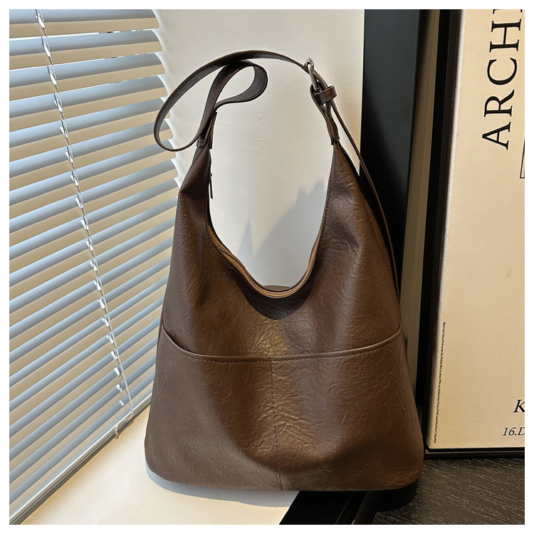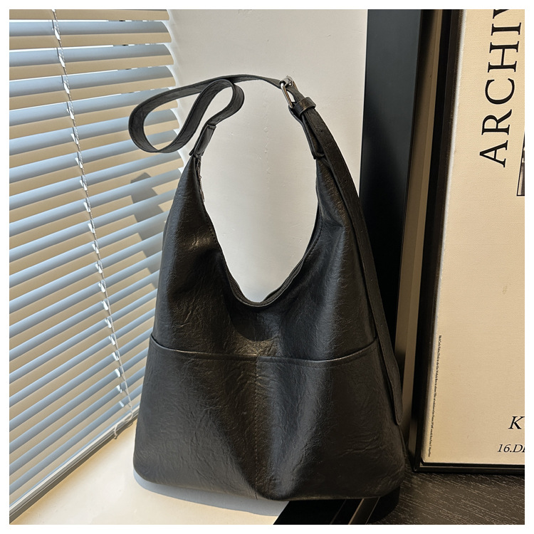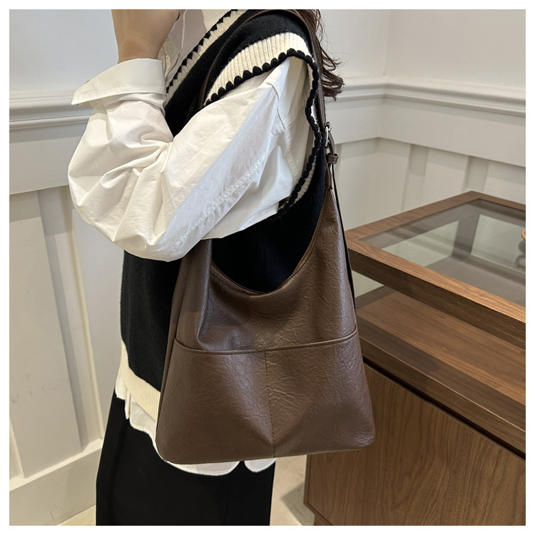messenger bag retro solid color textured pu commute leisure shoulder bag simple versatile large capacity bag female cross border