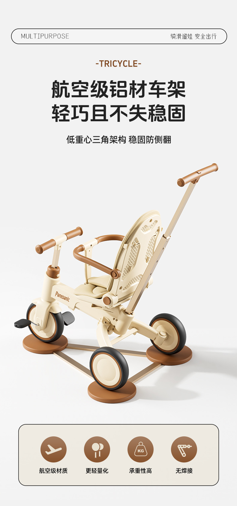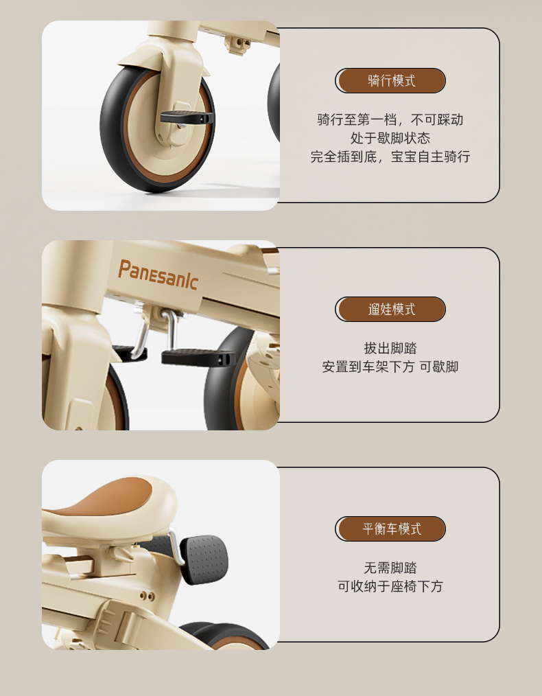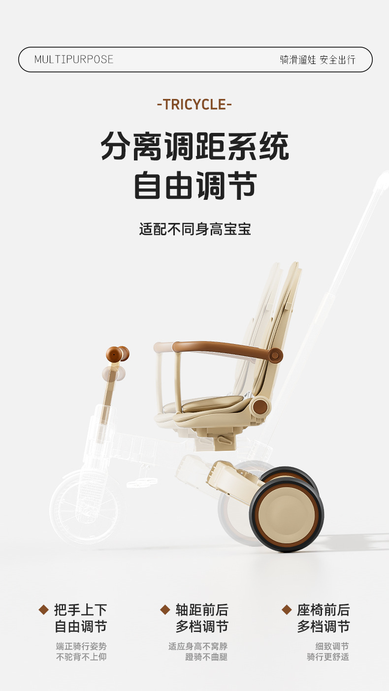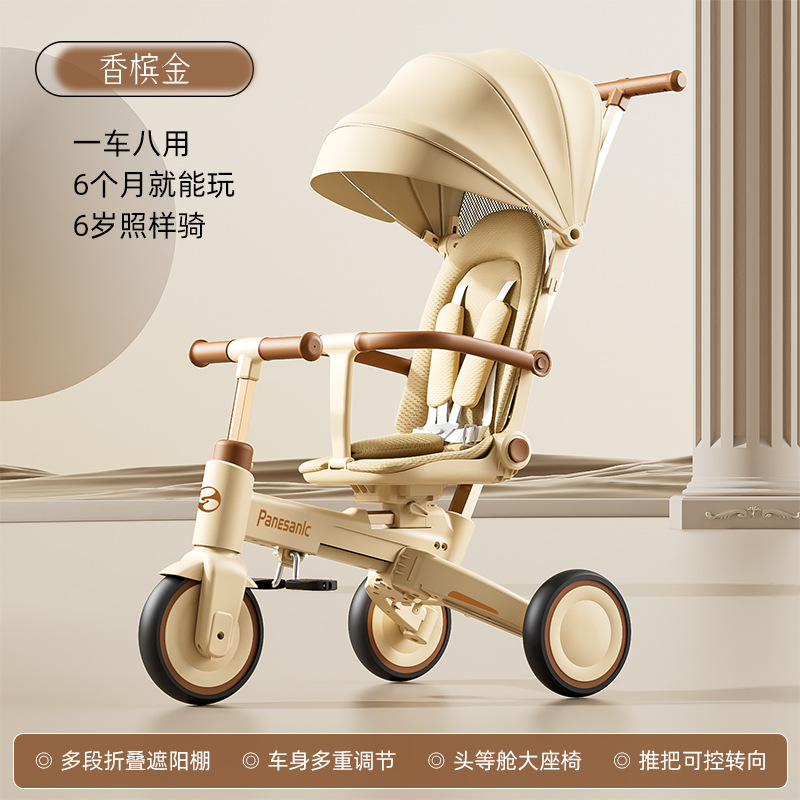 tl-tianlei tricycle s10 brown [high-end version] push handle + hood + luxury seat