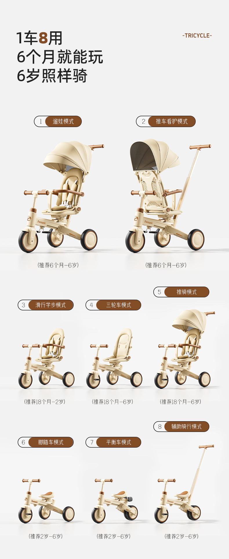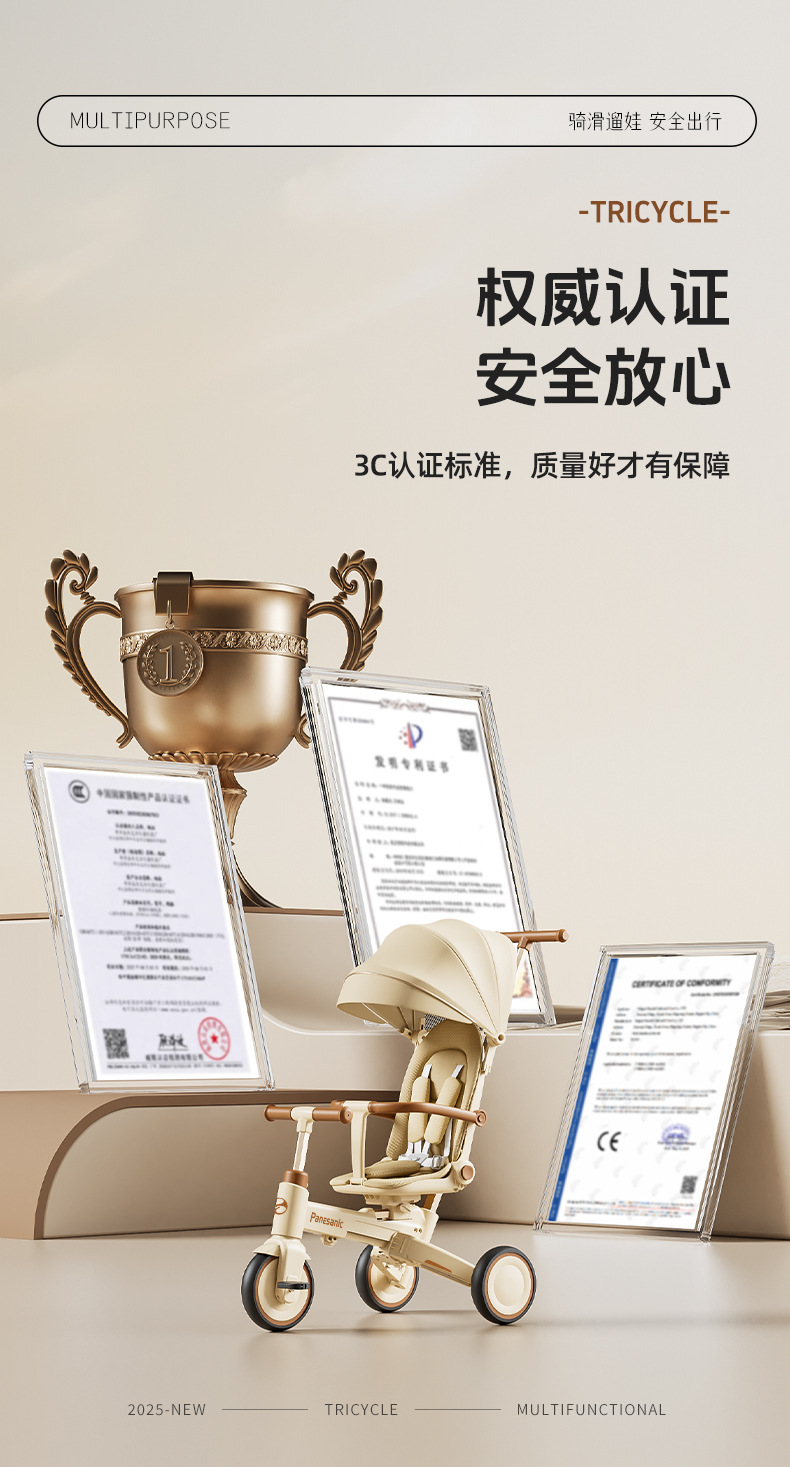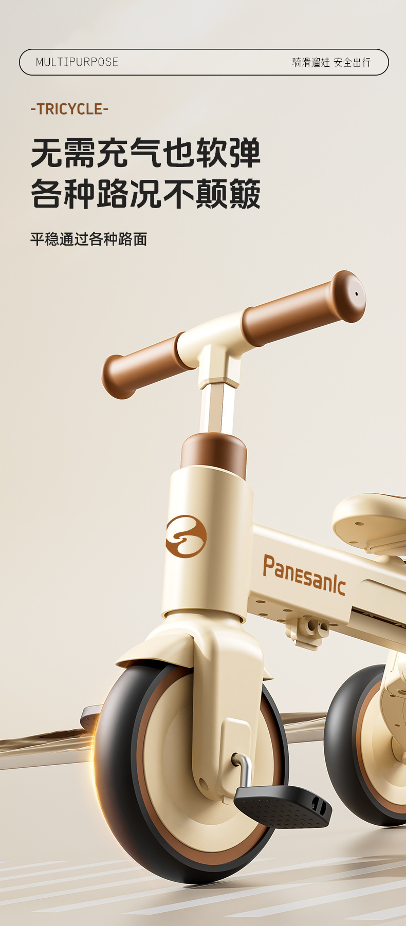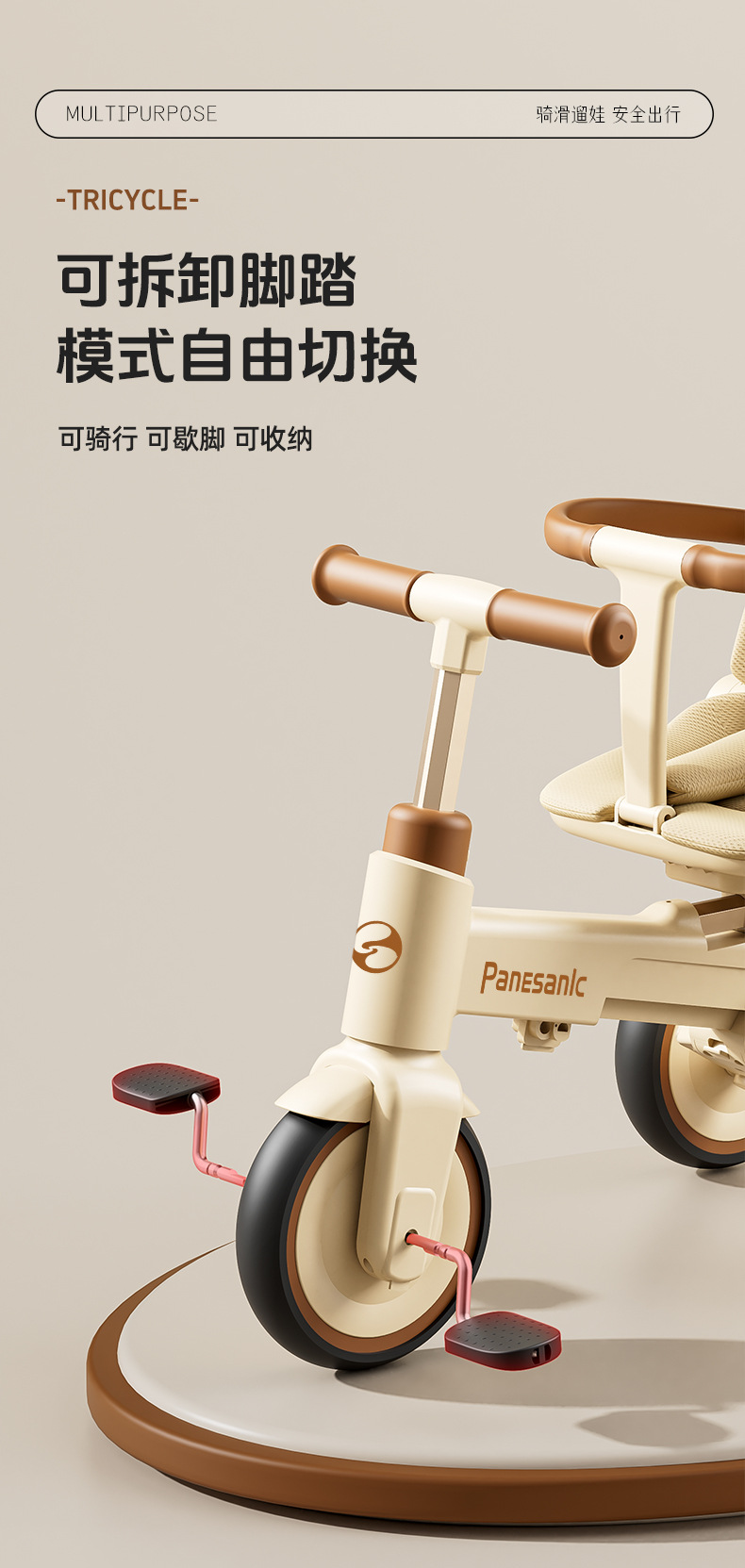 tl-tianlei tricycle s10 brown [high-end version] push handle + hood + luxury seat