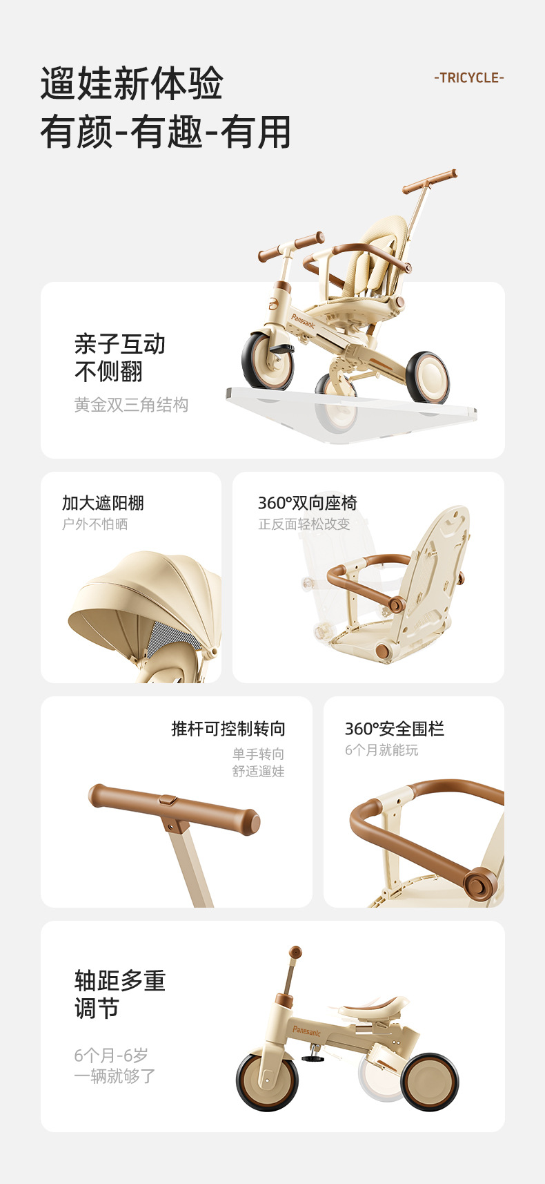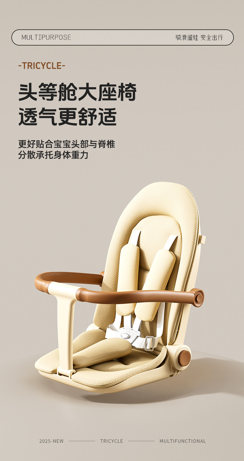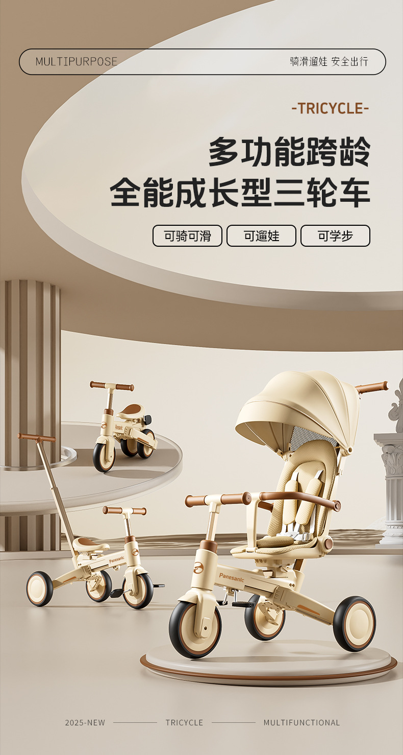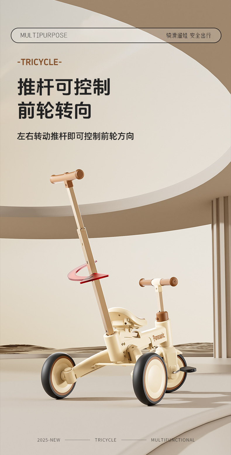 tl-tianlei tricycle s10 milky white [high-end version] push handle + hood + luxury seat
