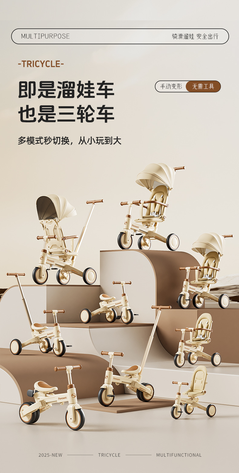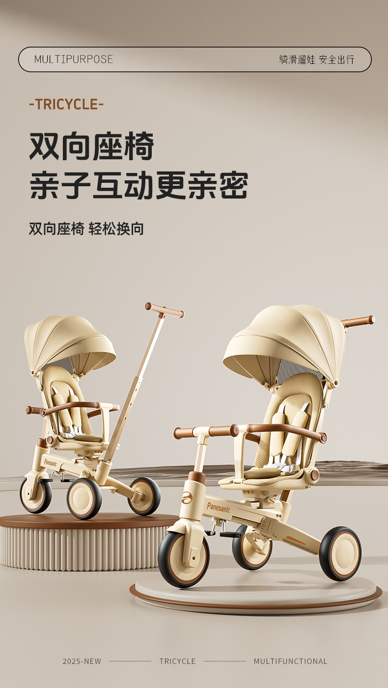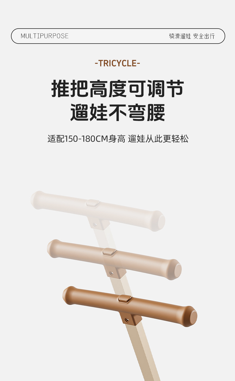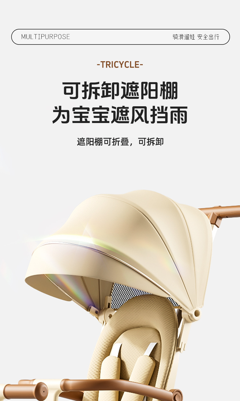 tl-tianlei tricycle s10 coffee color [high-end version] push handle + hood + luxury seat