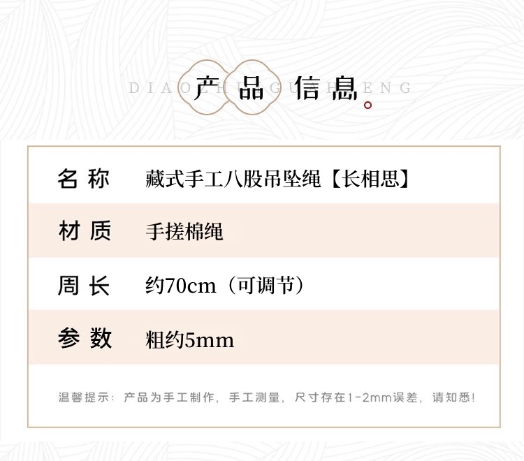 tibetan-style handmade eight-strand pendant rope [sauvignon blanc]