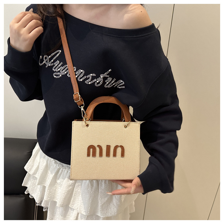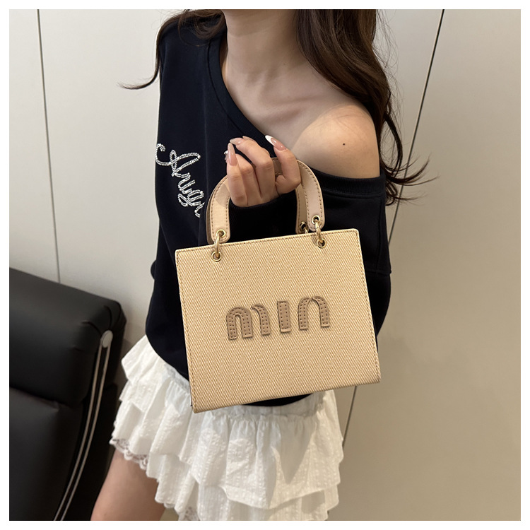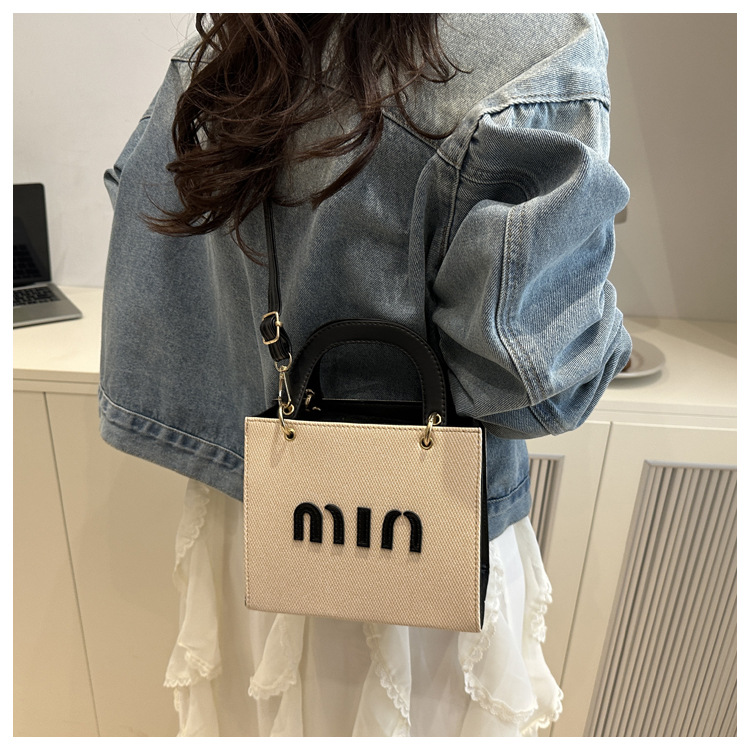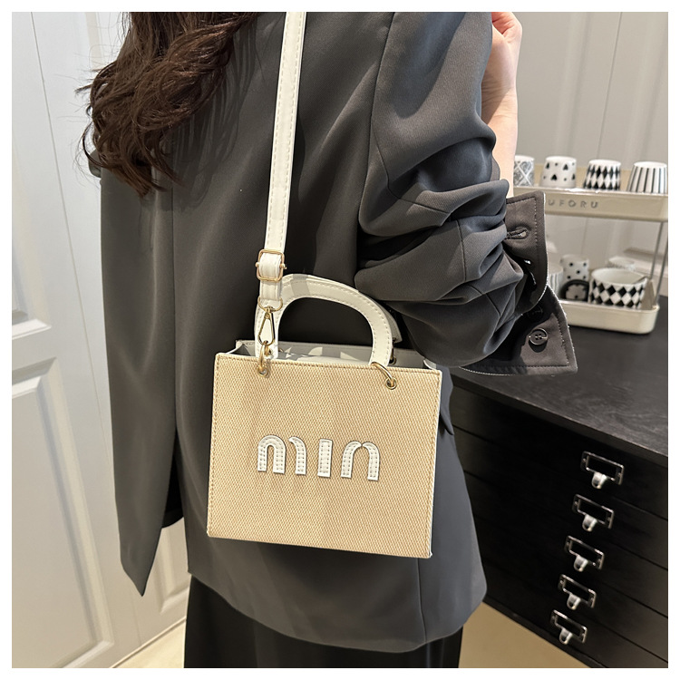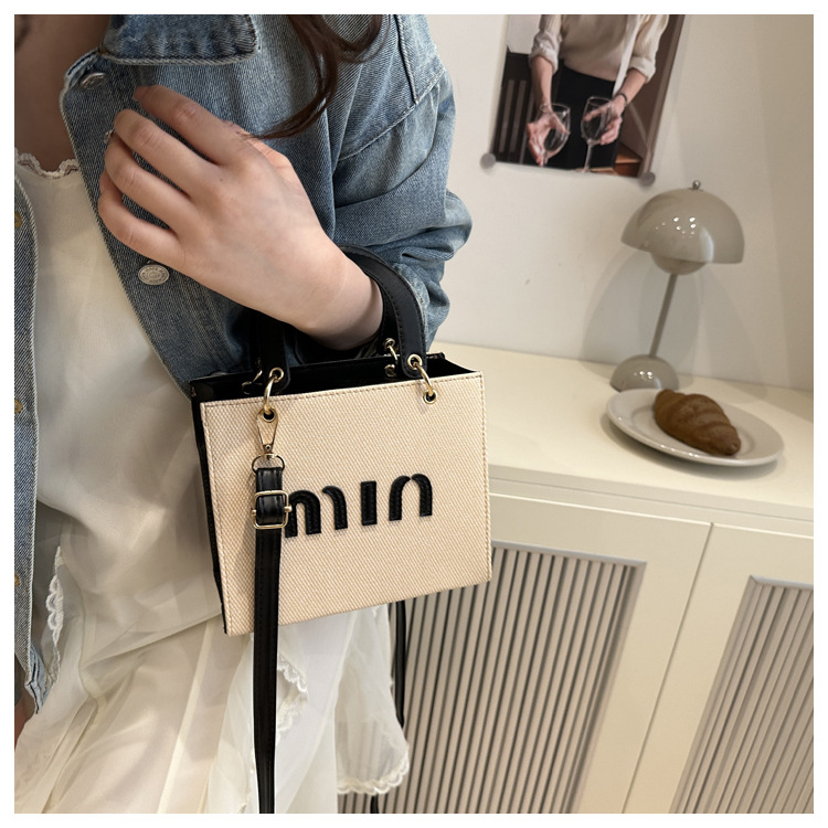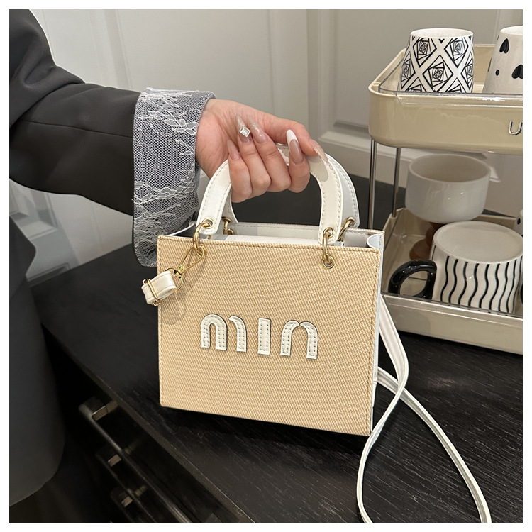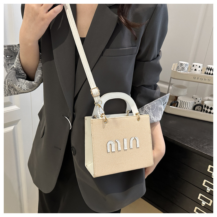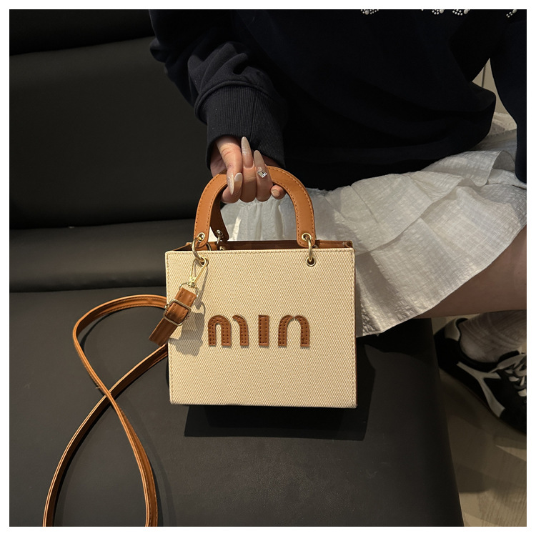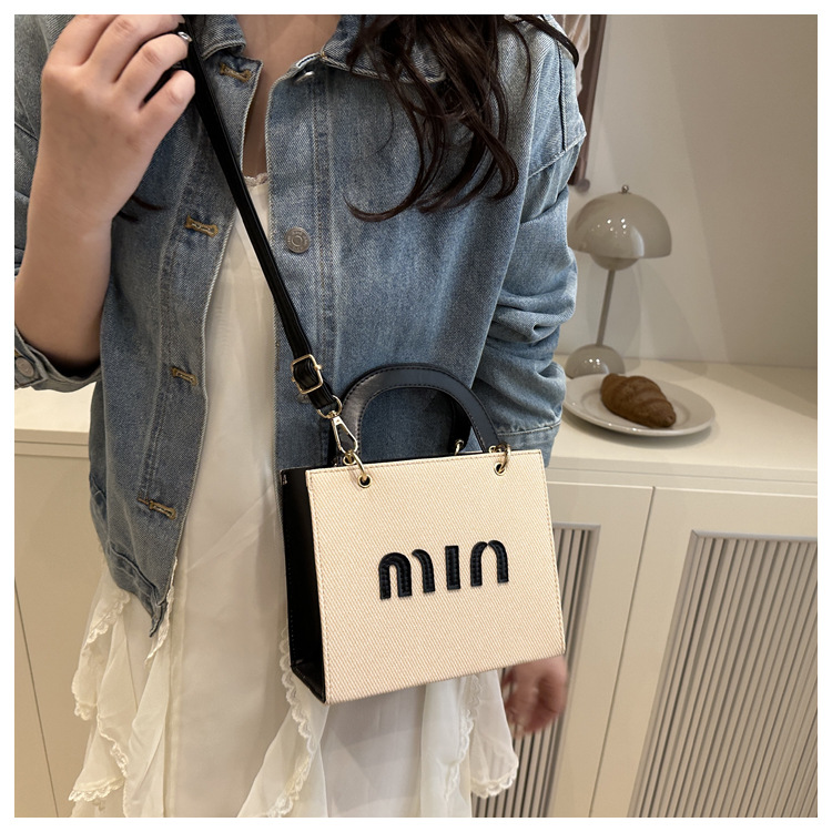 wholesale fashion color contrast portable small square bag women's bag 2025 summer new letter light luxury shoulder bag commuter messenger bag