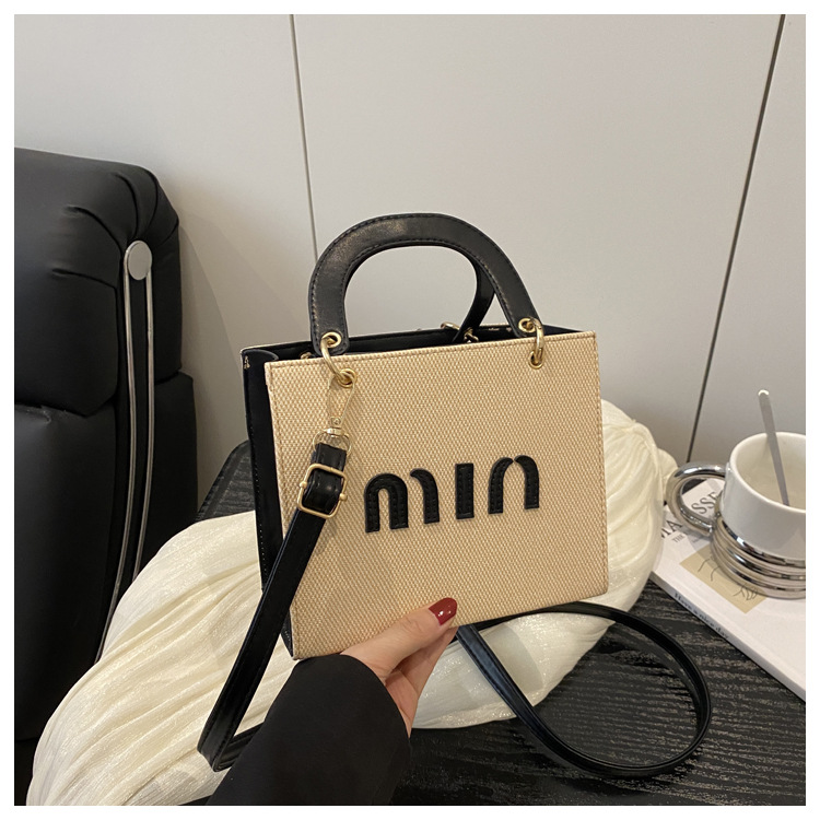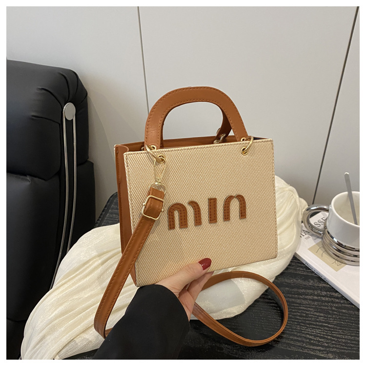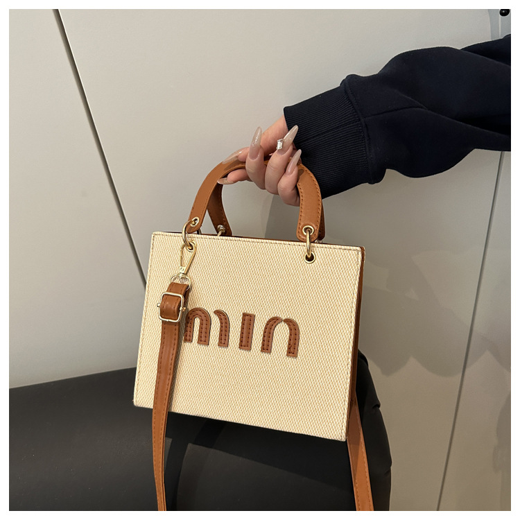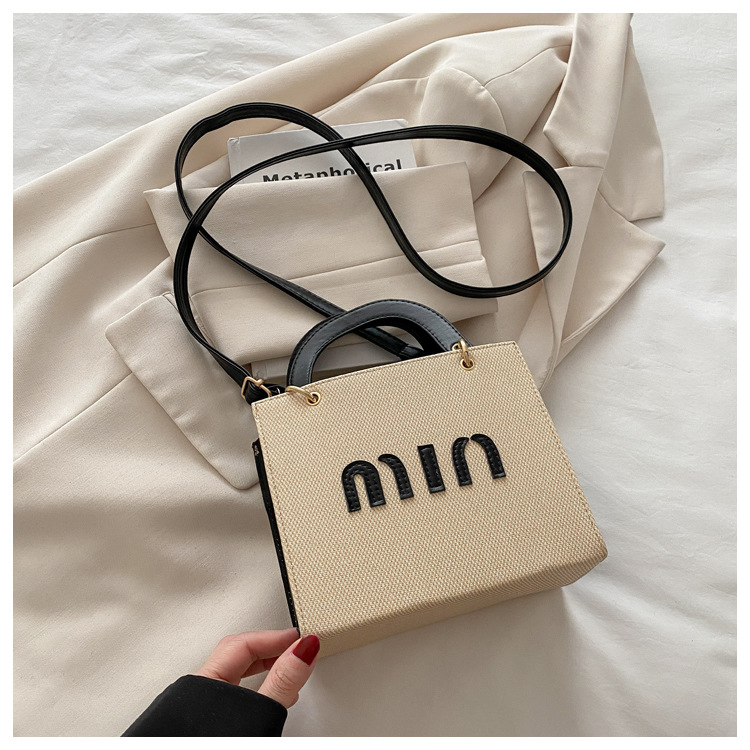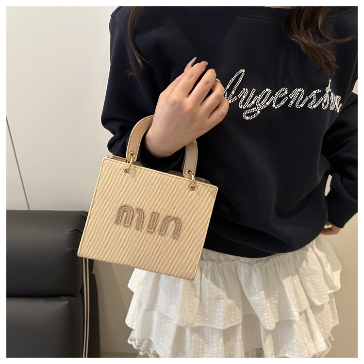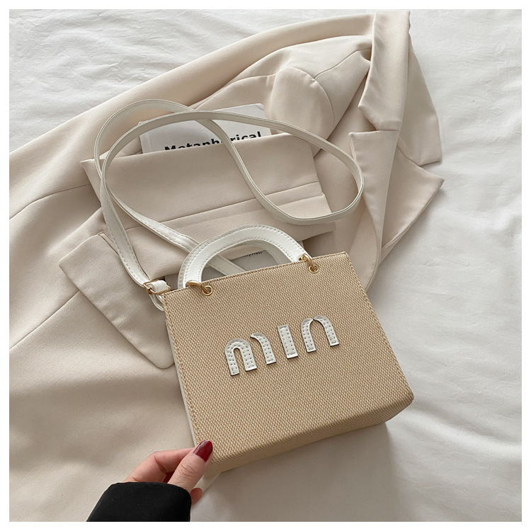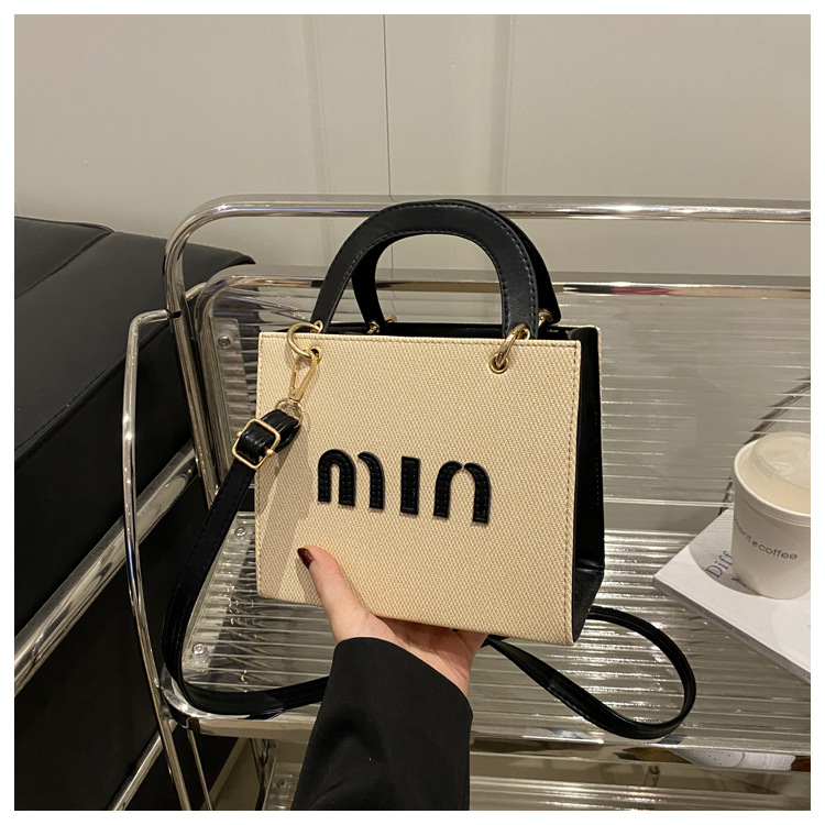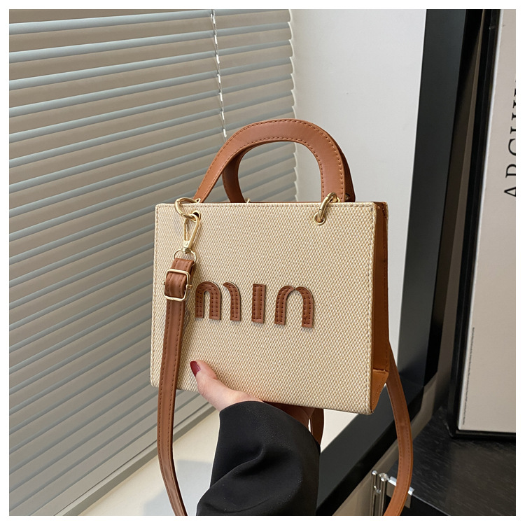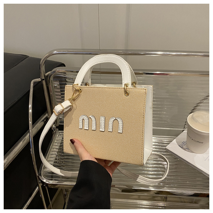 wholesale fashion color contrast portable small square bag women's bag 2025 summer new letter light luxury shoulder bag commuter messenger bag