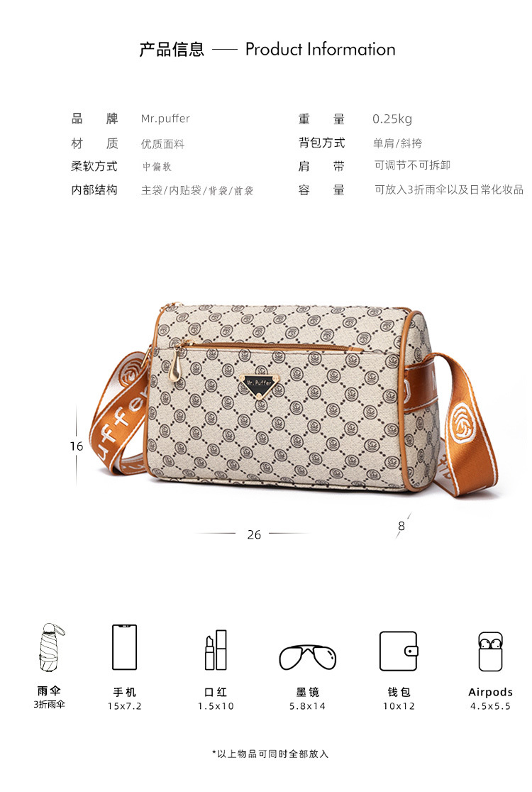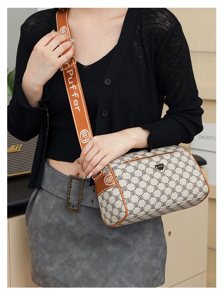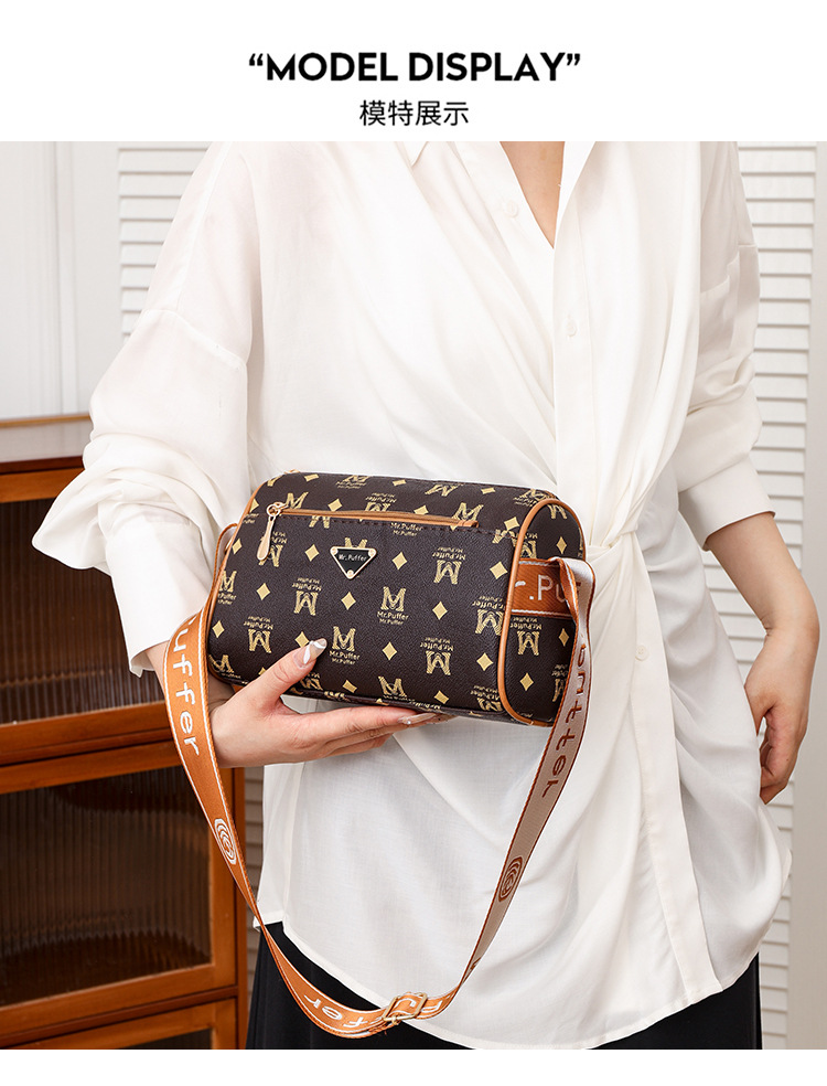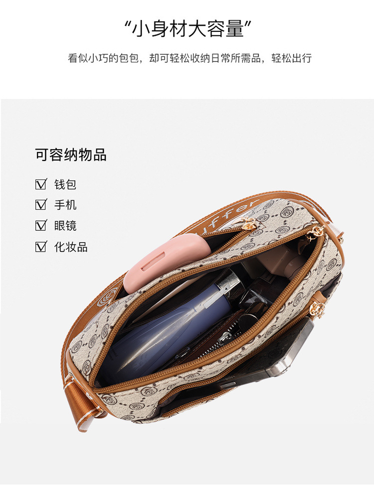 bag summer high sense 2024 new middle-aged women's bag fashion temperament round bag printing large-capacity crossbody bag