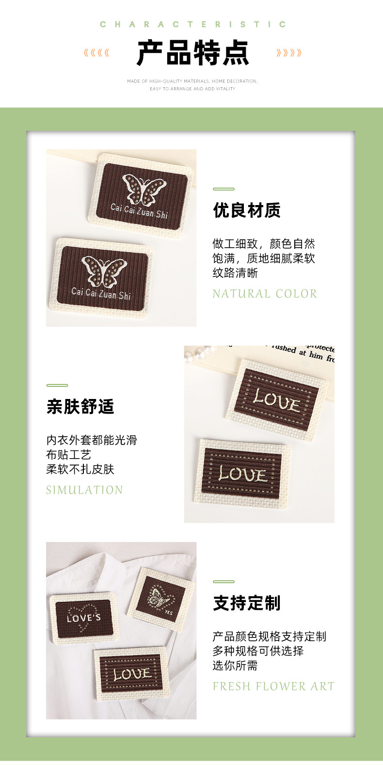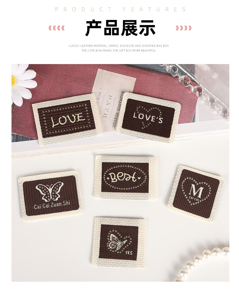 cloth base* coffee color* square* letters* 5*4cm