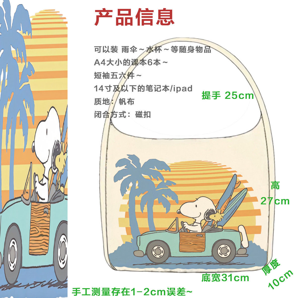color: sunset snoopy shoulder bag