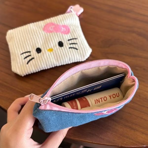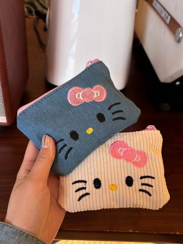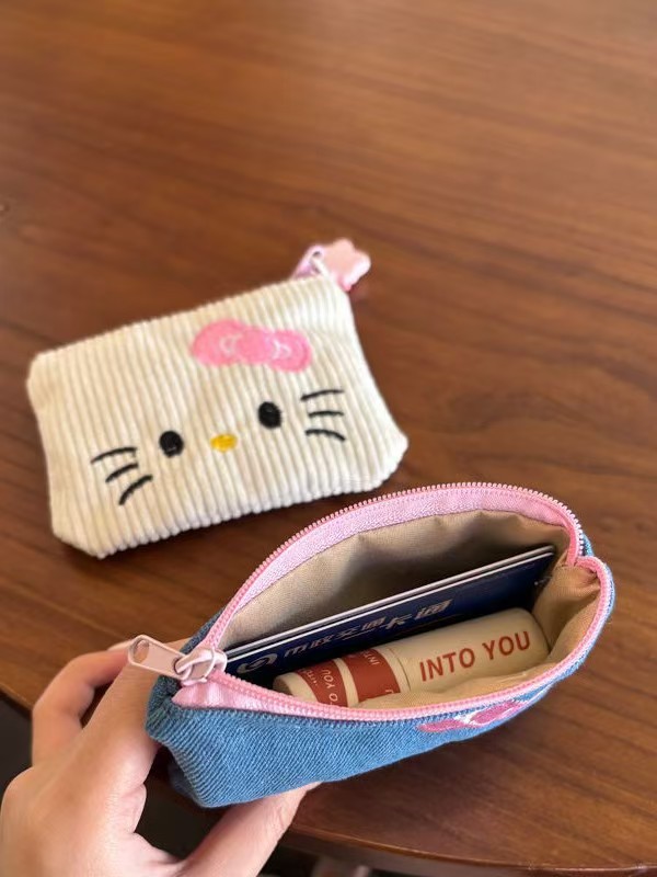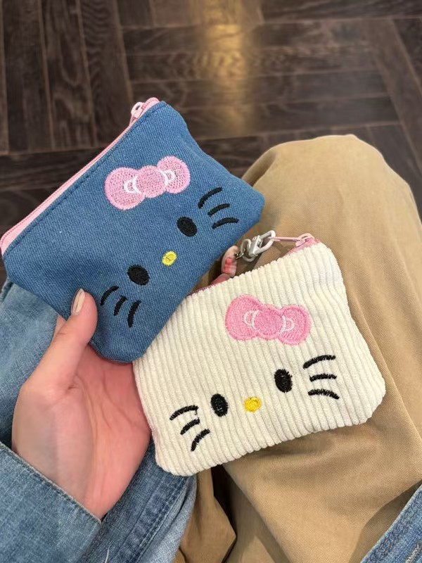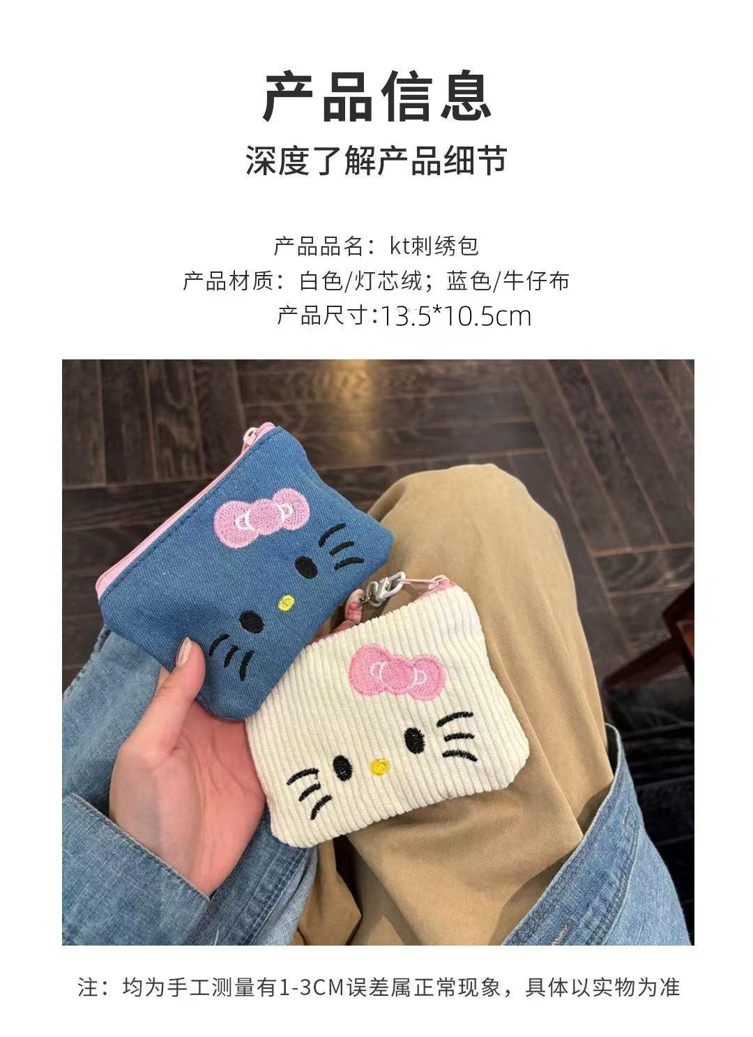 color: blue denim kt embroidery storage bag [length 13.5 height 1