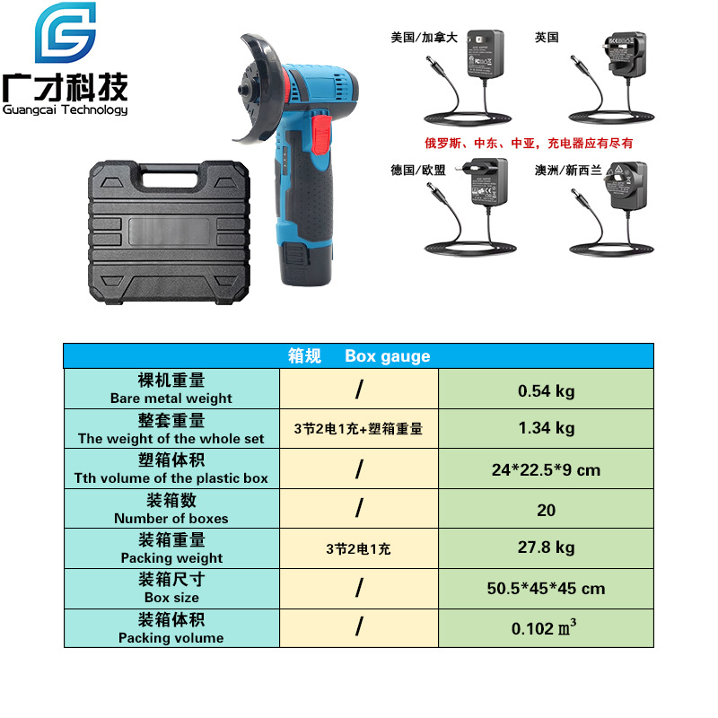 3 sections, 2 electricity, 1 charge + plastic box (us standard)