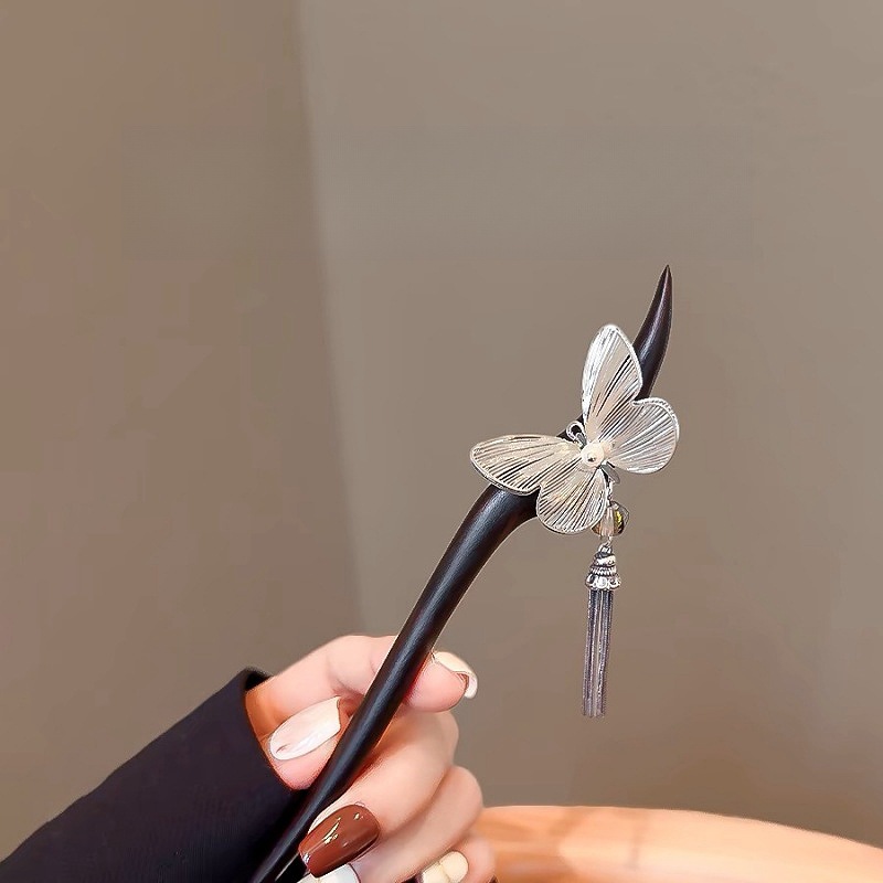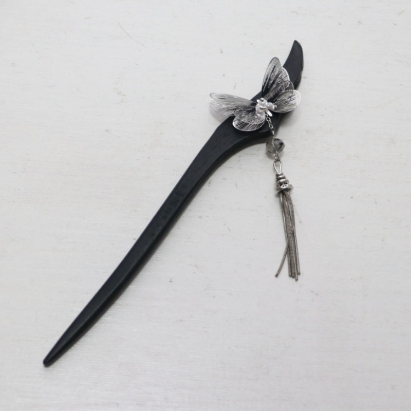 silver silk butterfly tassel hairpin