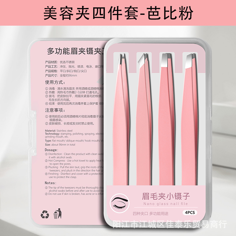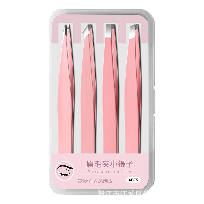 plastic box paper card pink eye tweezer 4-piece set