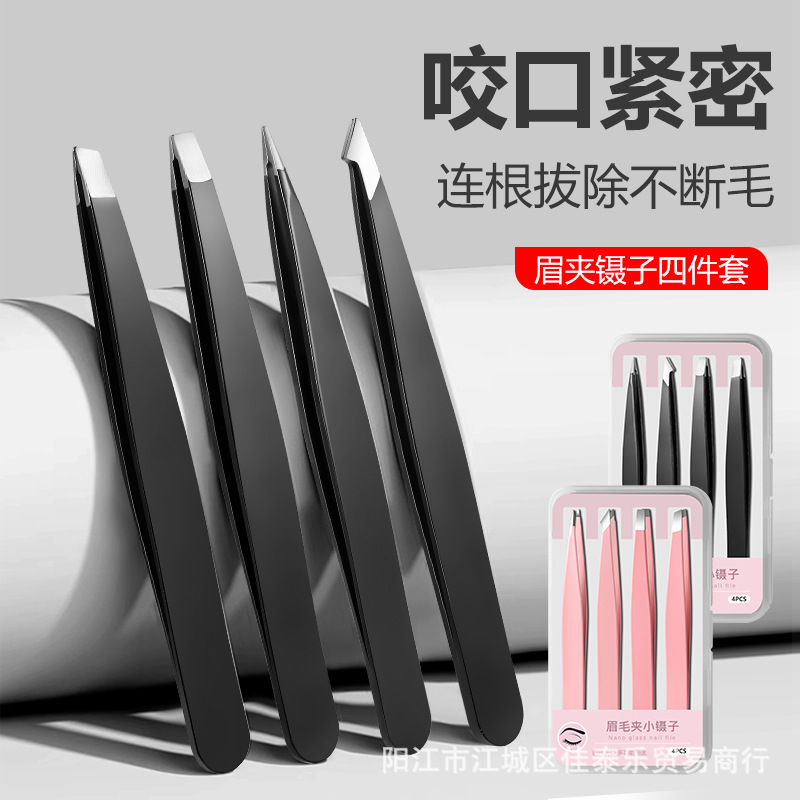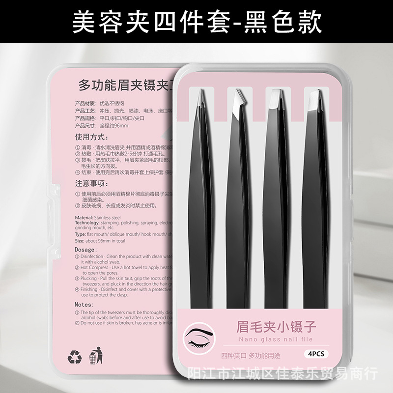 plastic box paper card black eye tweezer 4-piece set