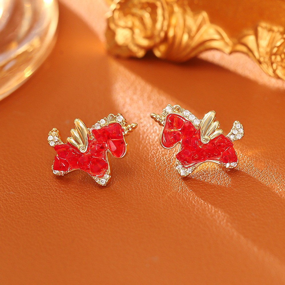 red unicorn earrings
