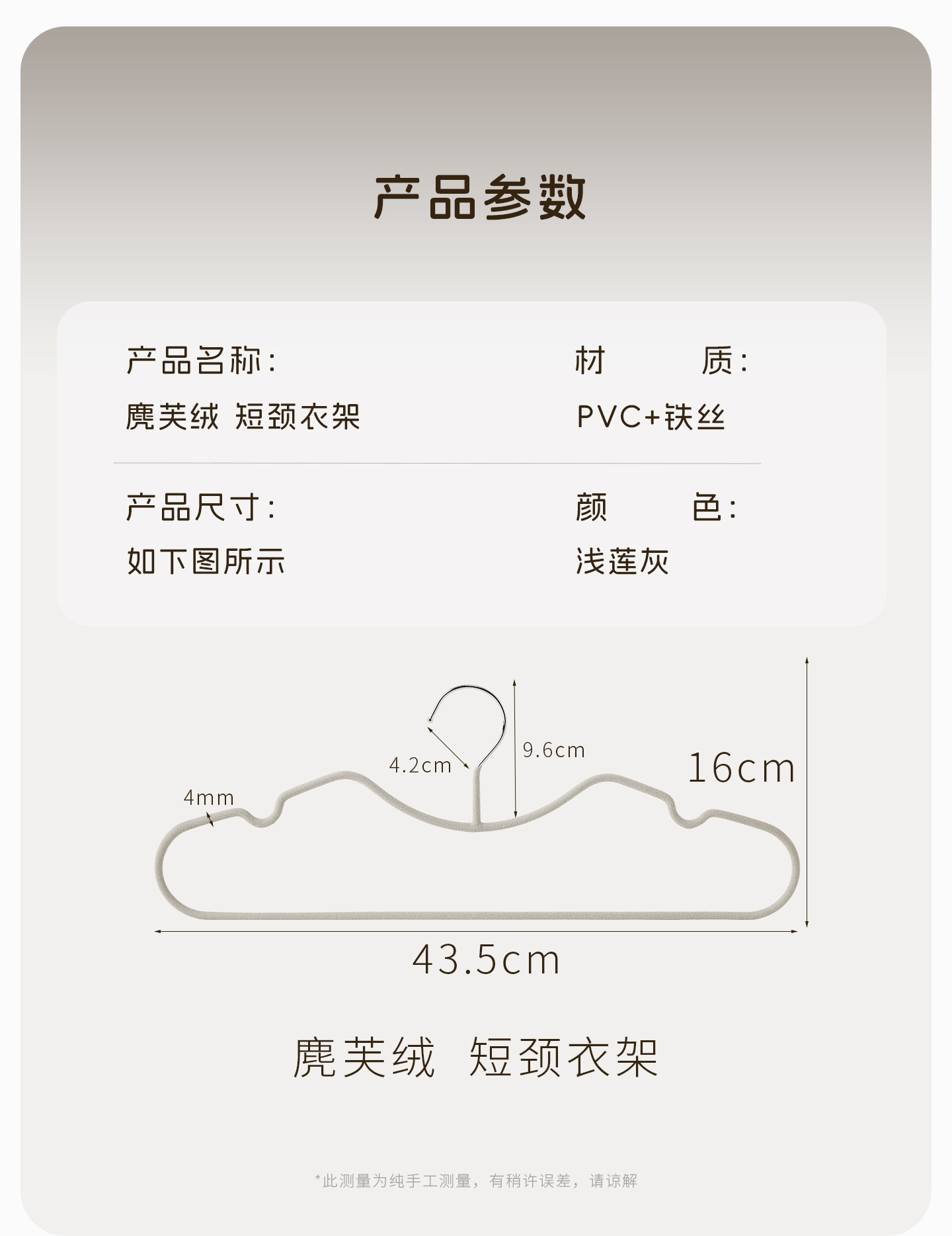 velvet short neck hanger -- light lotus gray 217
