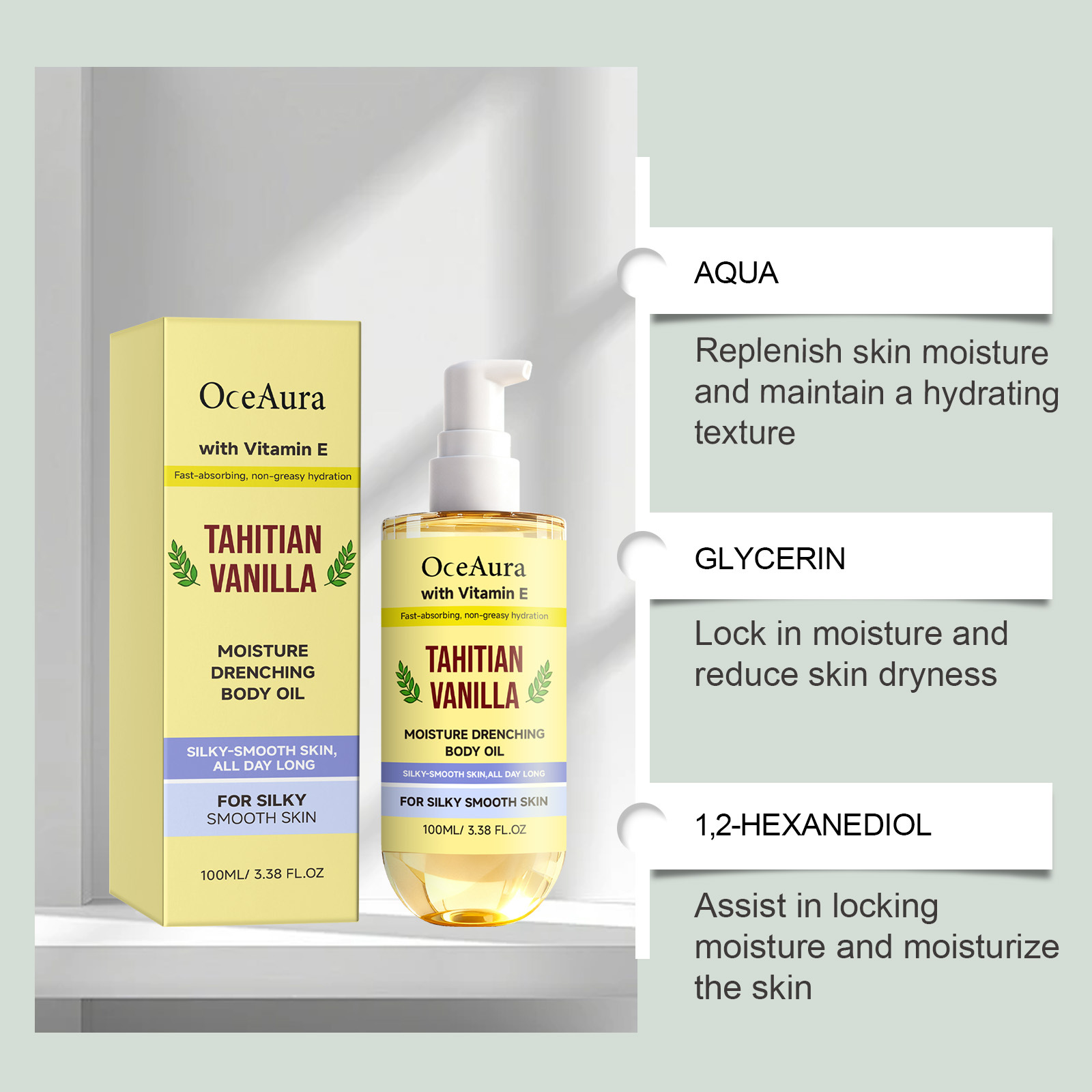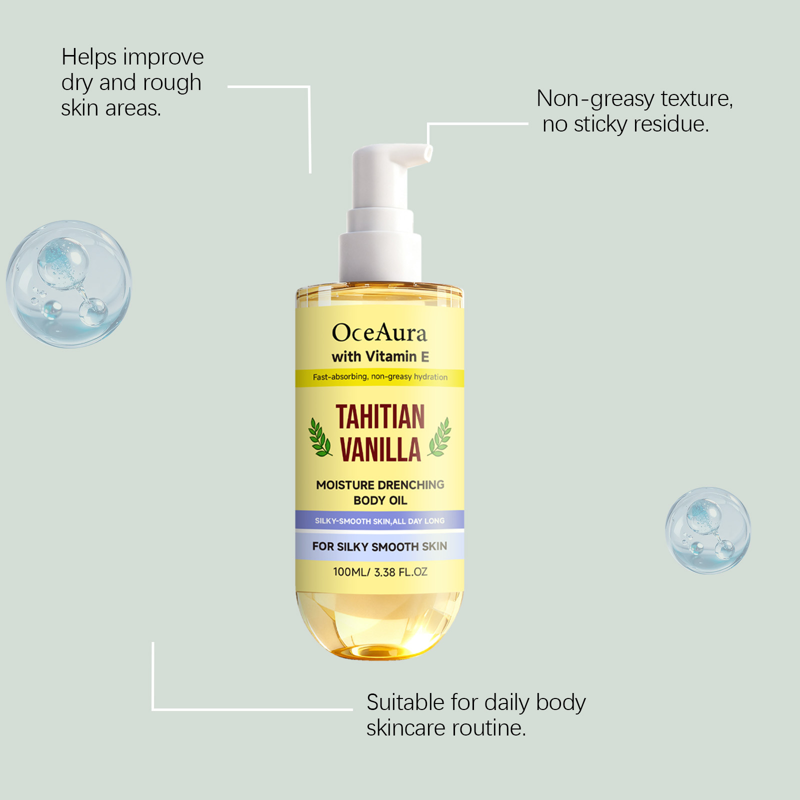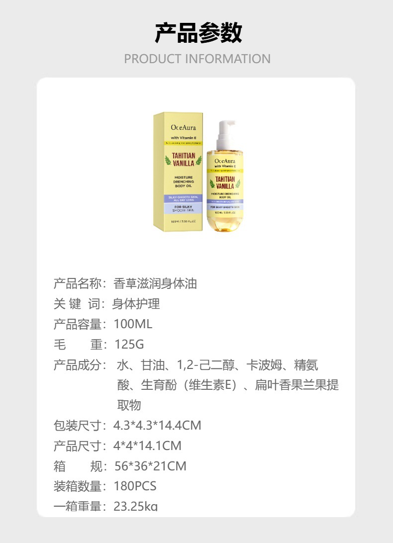 oceaura vanilla moisturizing body oil daily gentle moisturizing care body skin texture delicate and refreshing