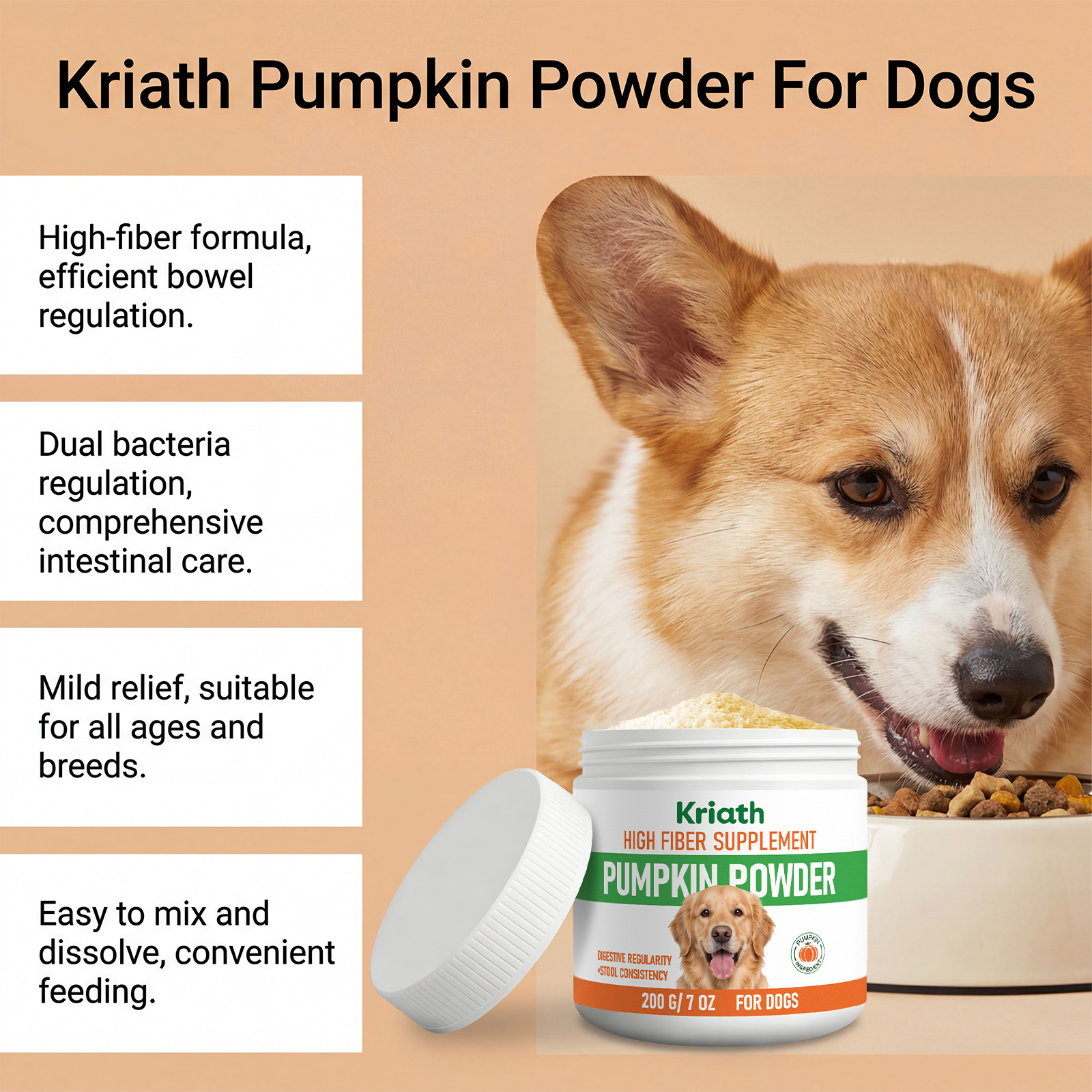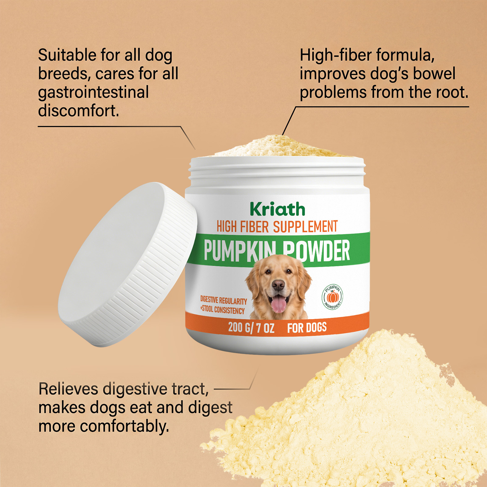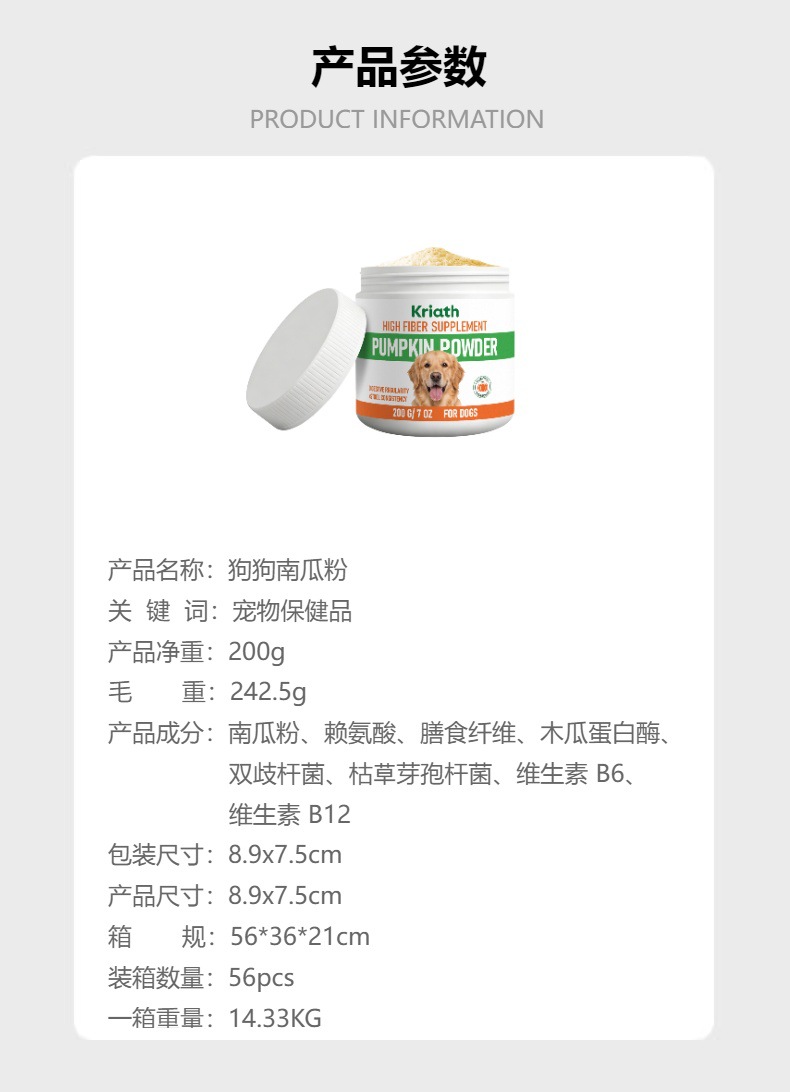 kriath dog pumpkin powder mild formula supplement diet intestinal regulation care dog stomach