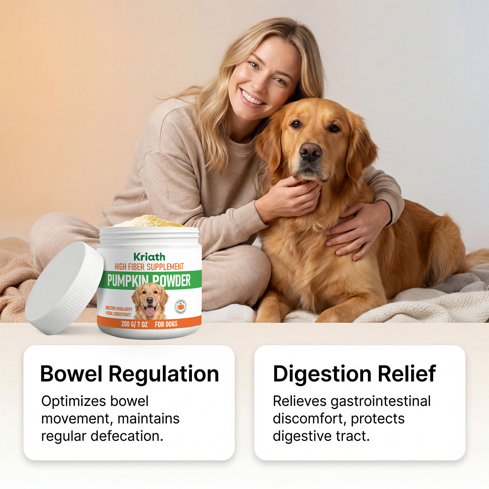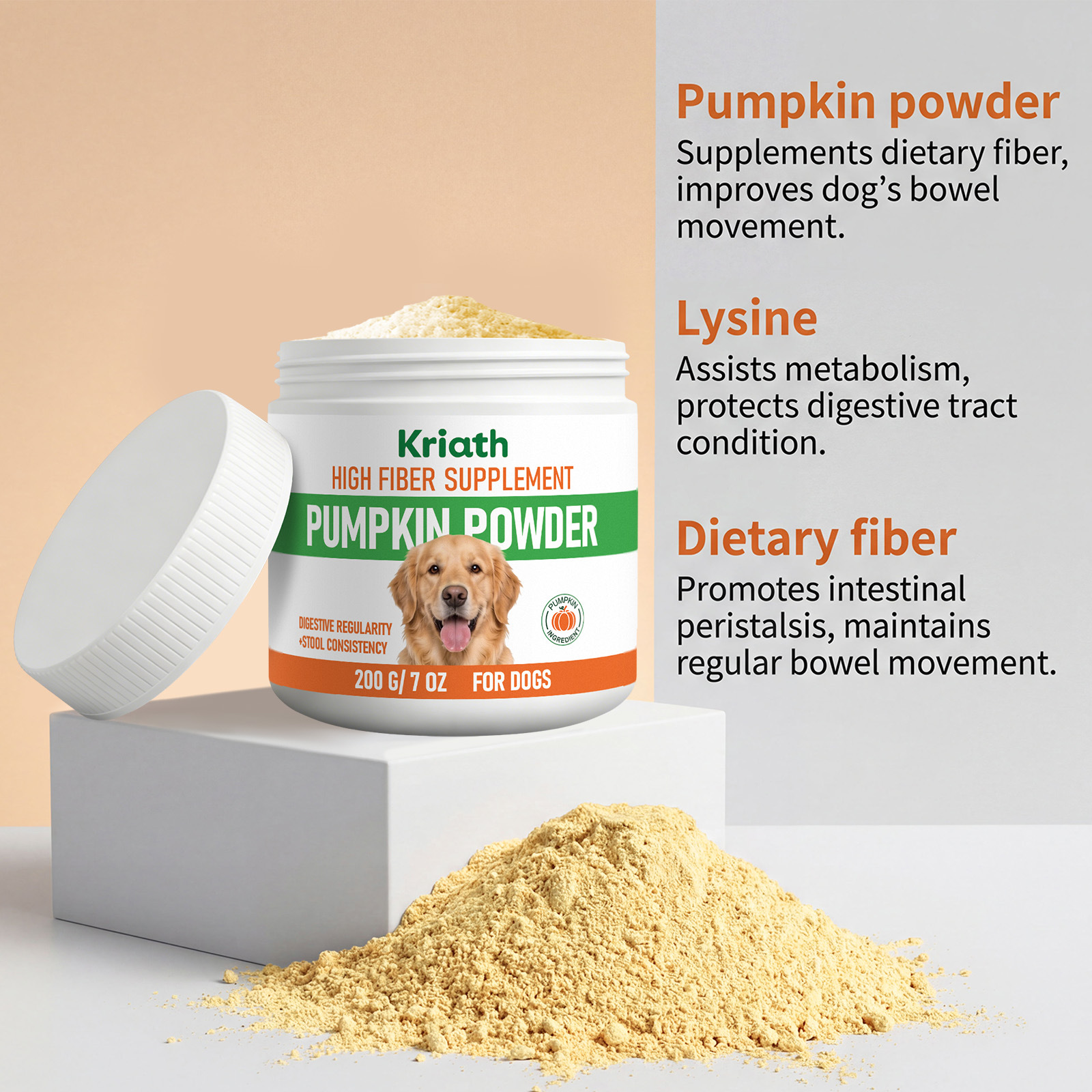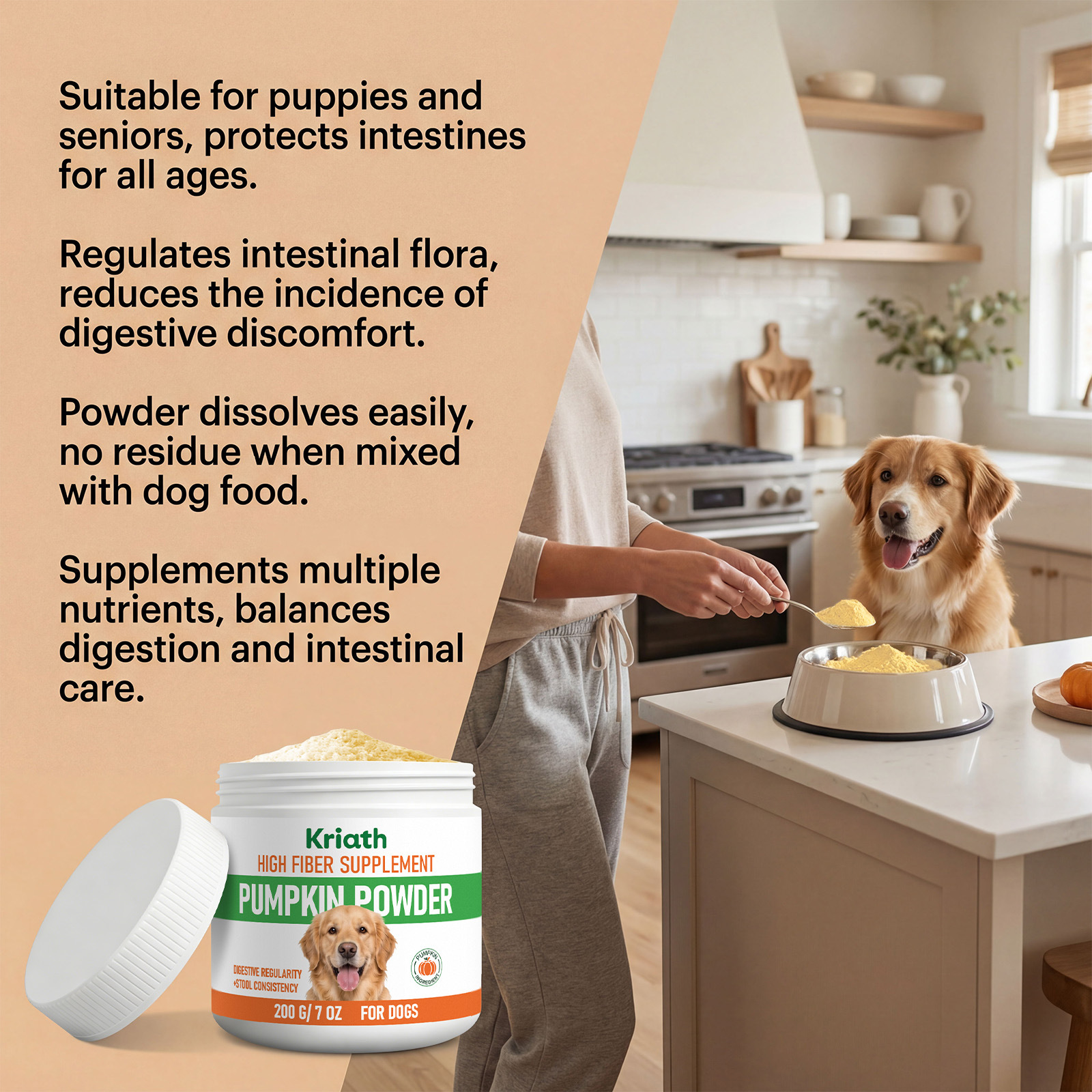 kriath dog pumpkin powder mild formula supplement diet intestinal regulation care dog stomach