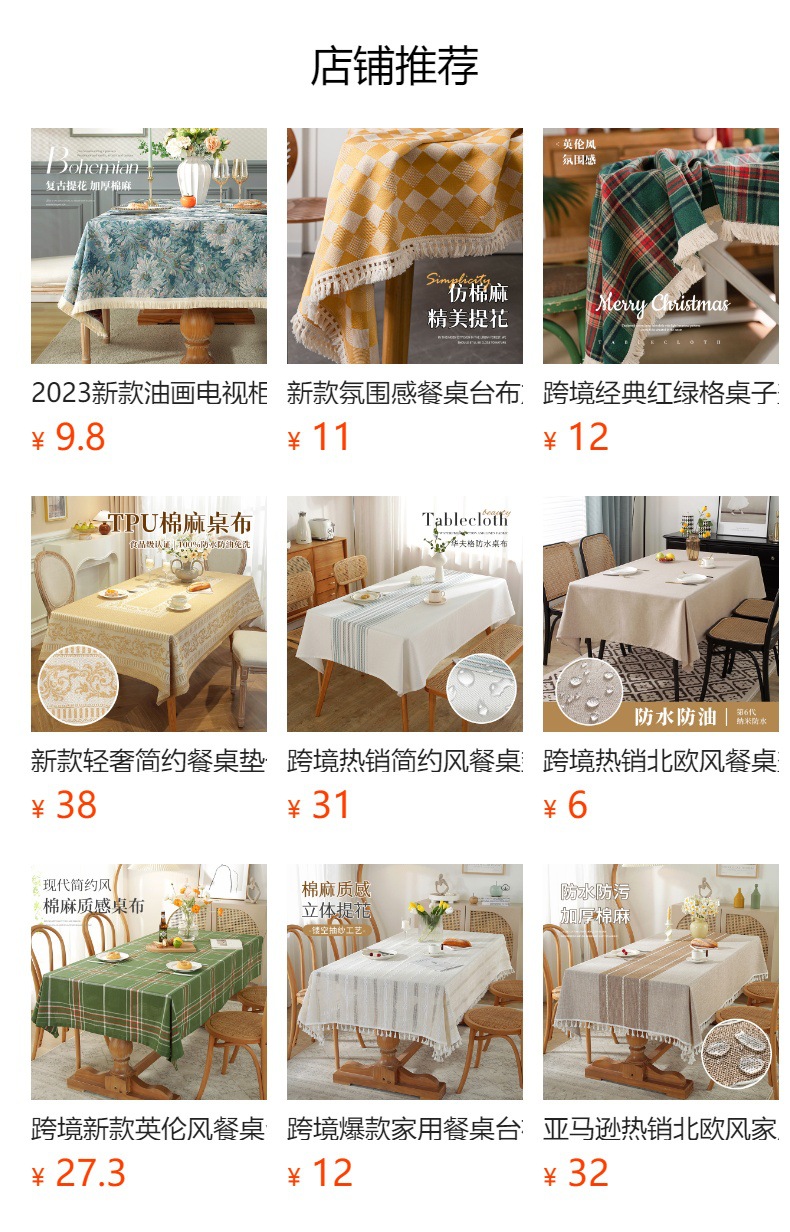 | waterproof rectangular tablecloth 140*260cm | CN¥ 54.06 |