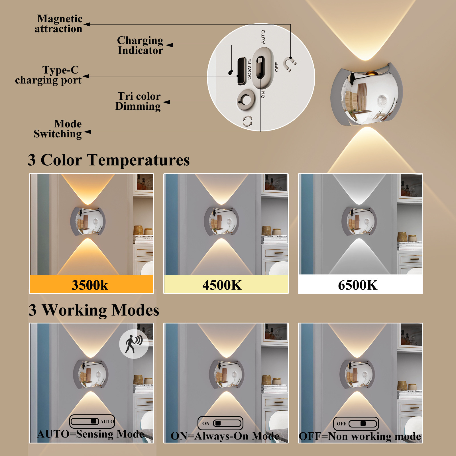 product attribute 3: rechargeable wall lamp
