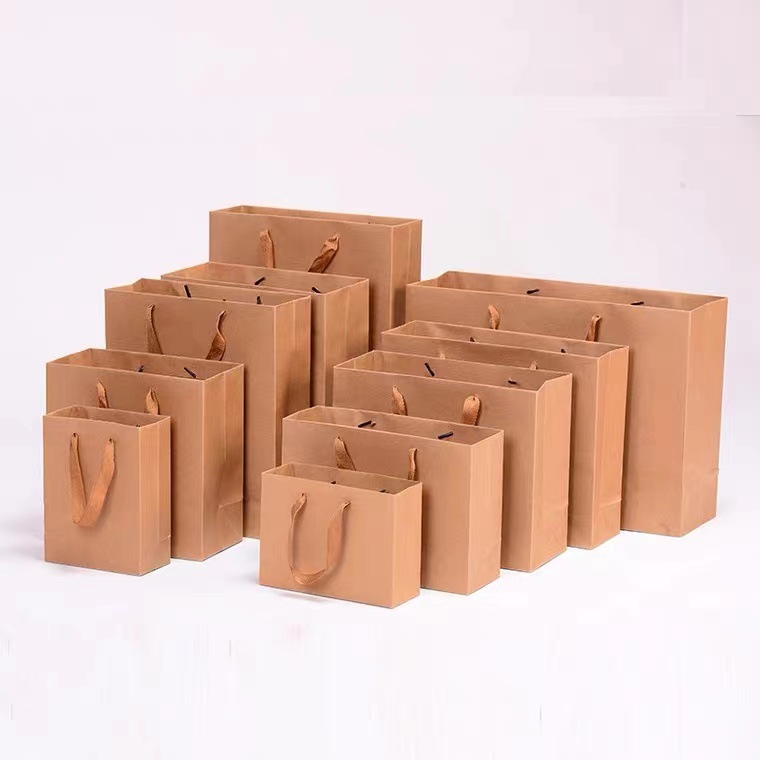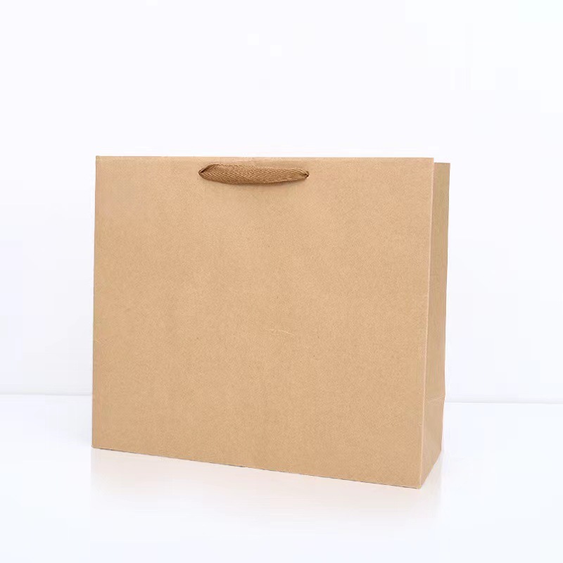 horizontal style: 32cm long +11cm side * 28cm high; kraft paper bag; 180g yellow kraft