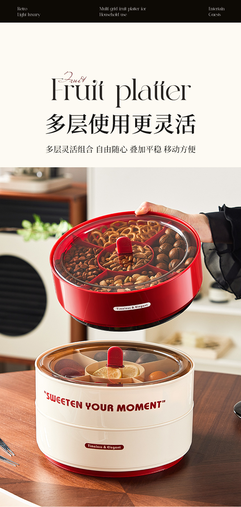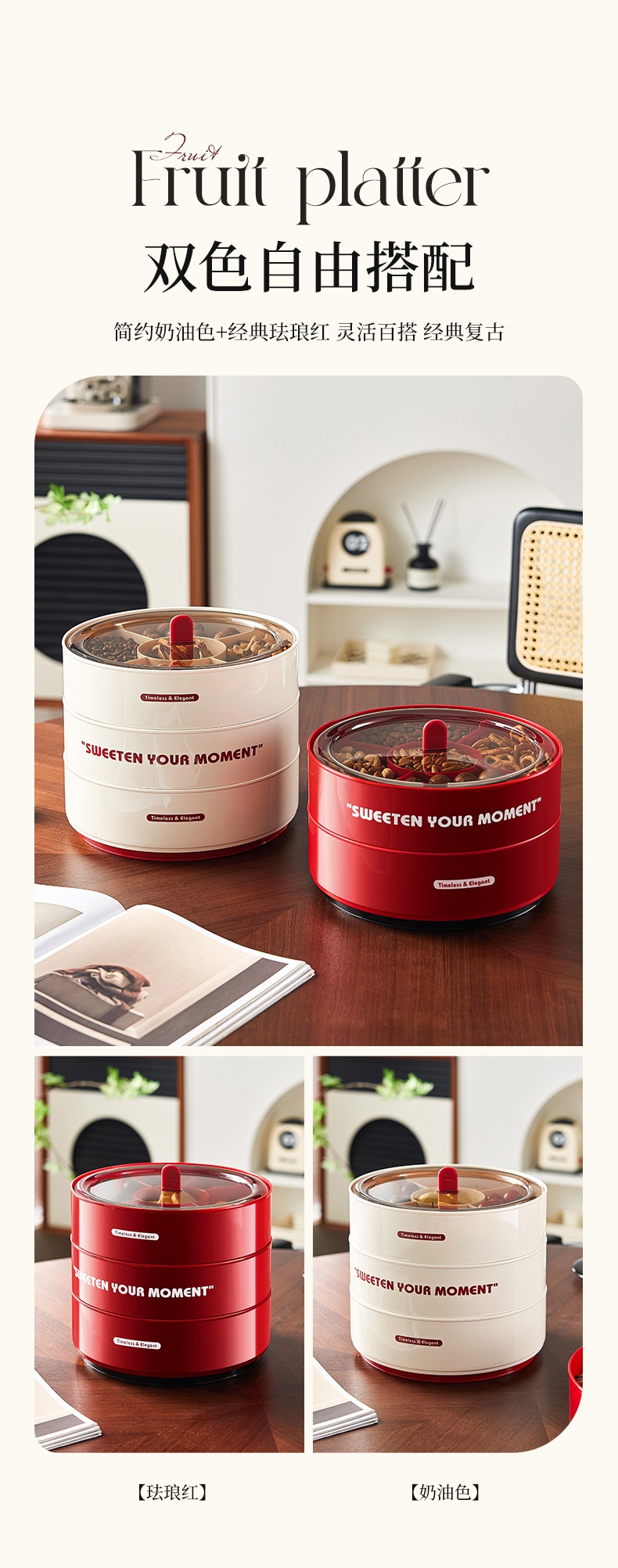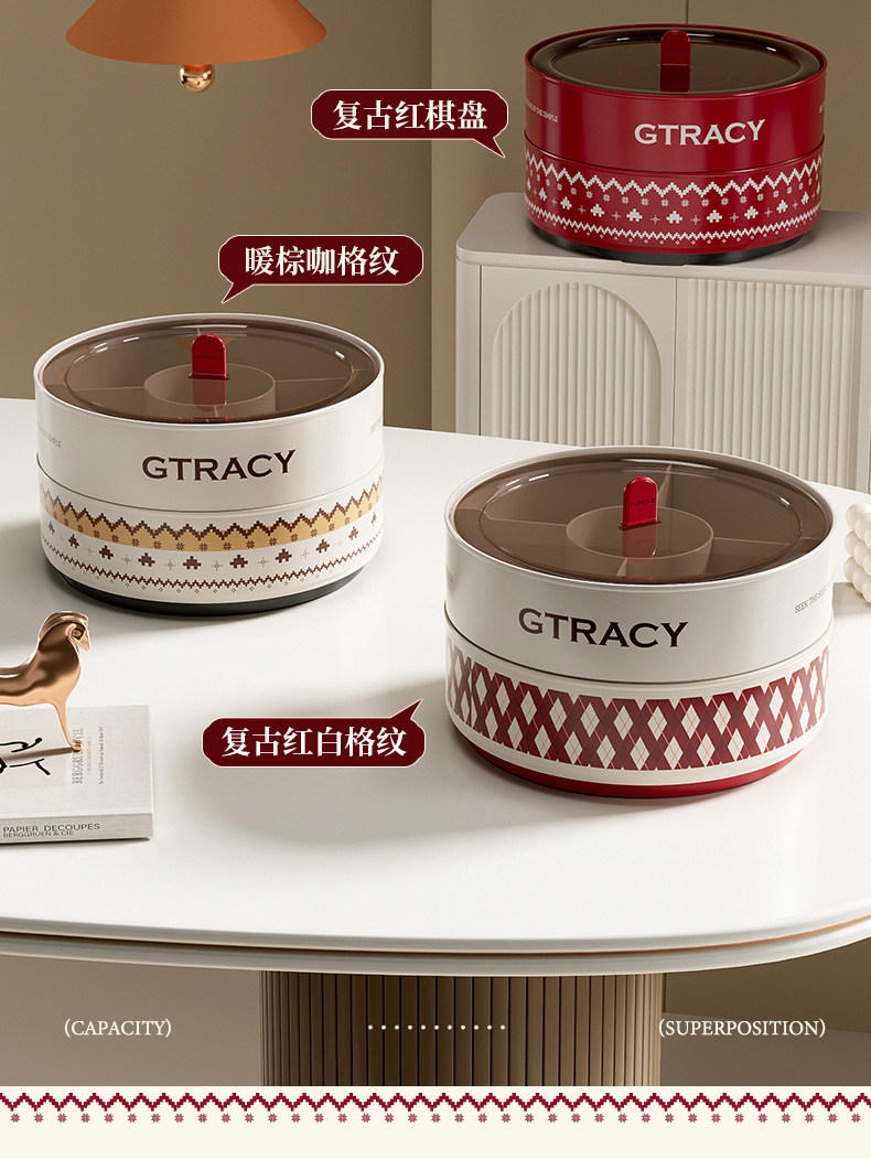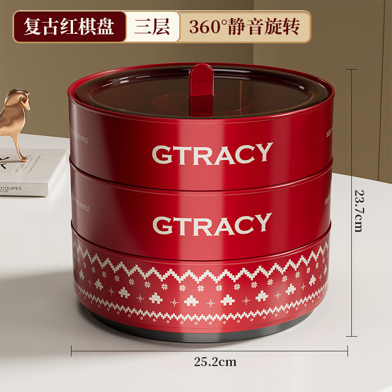 three-layer [retro red chessboard]-with rotating plate