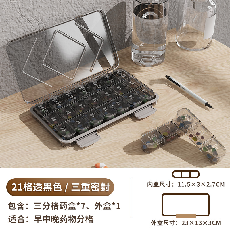 21 grid & transparent black medicine box