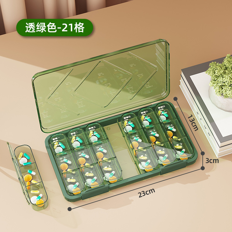 21 grid transparent green pill box