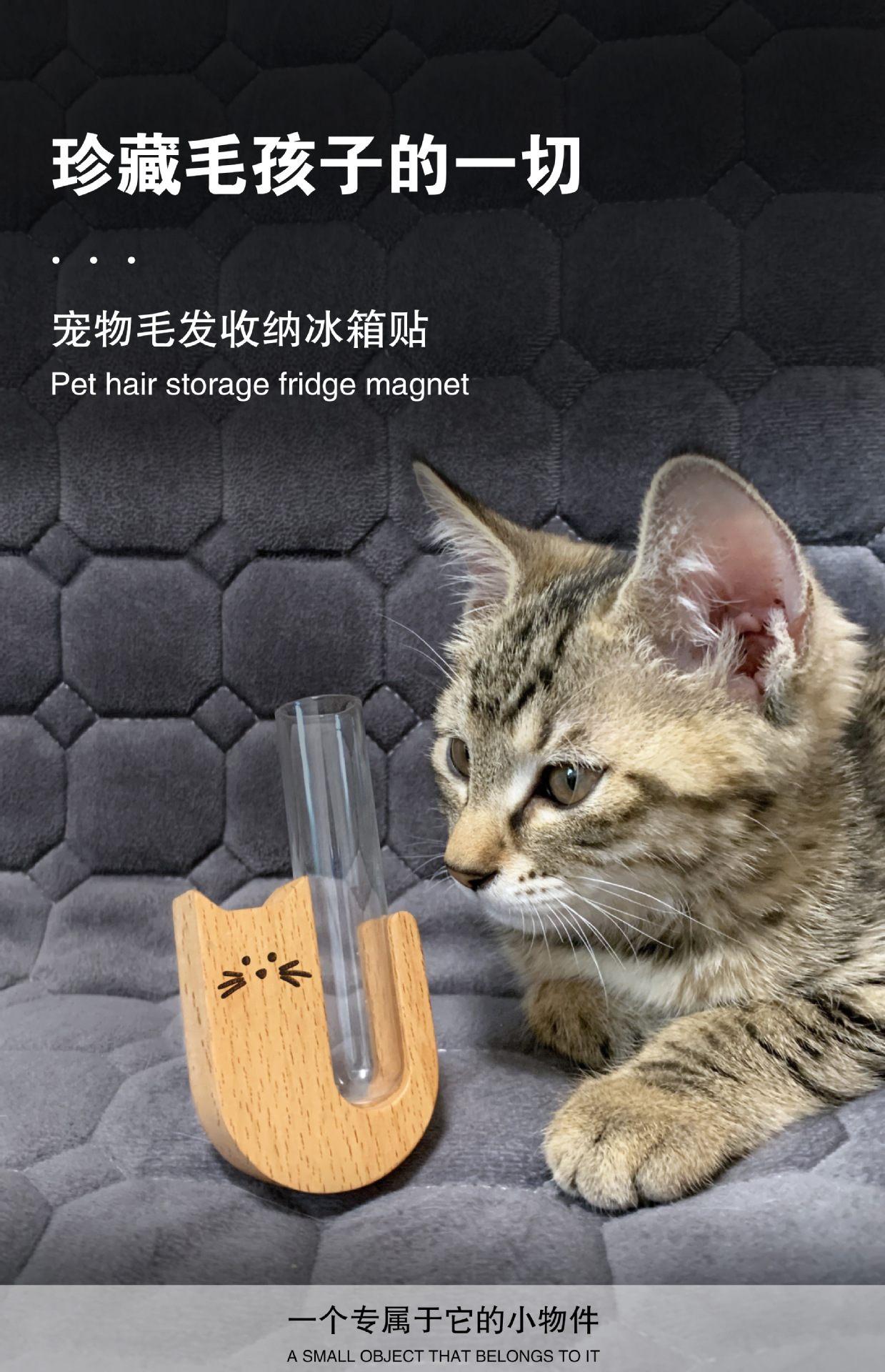 [black walnut open-eye cat] pet hair collection refridgerator magnets