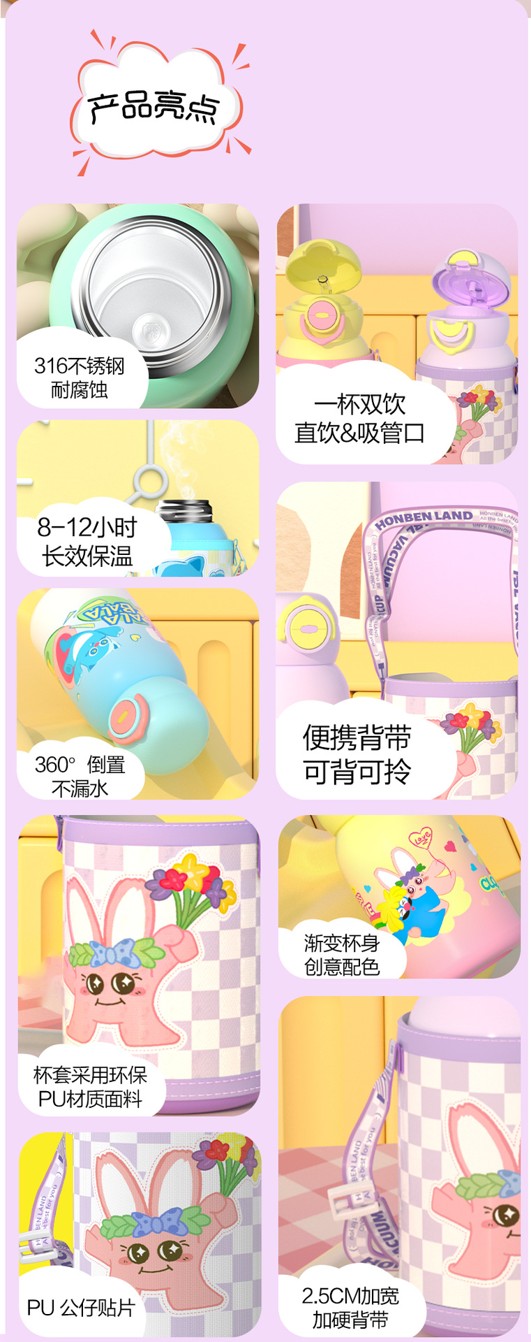 style: with rope handle, large capacity, with straw, with lock