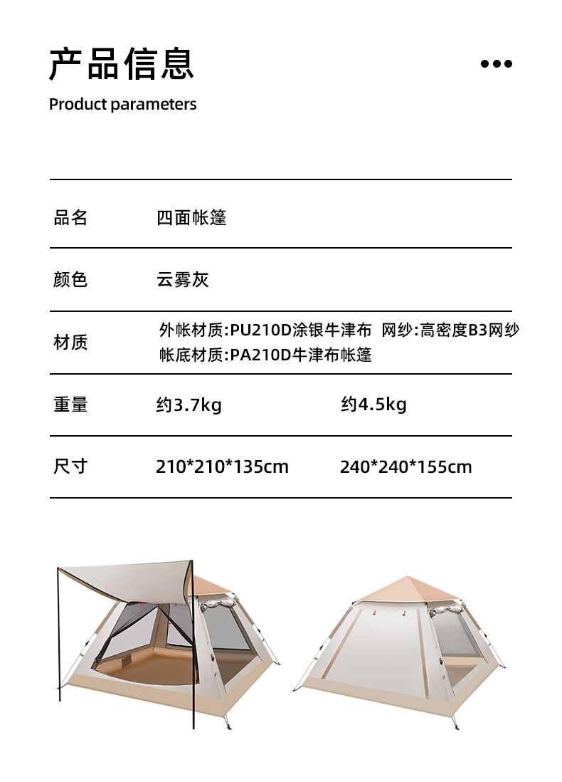 rainfly materials: pu210d silver pastebrushing oxford cloth