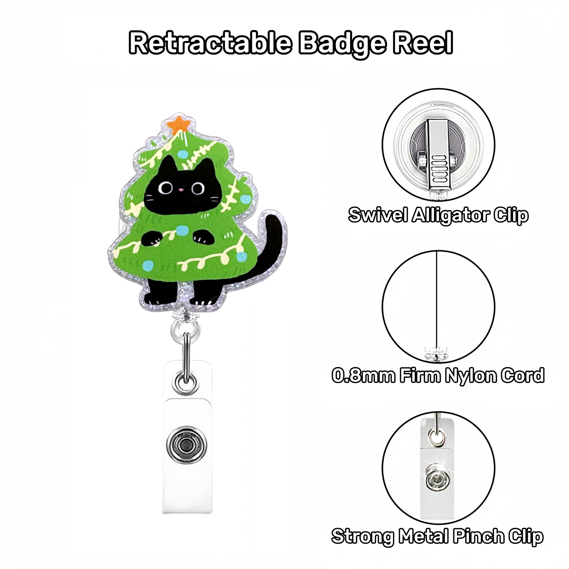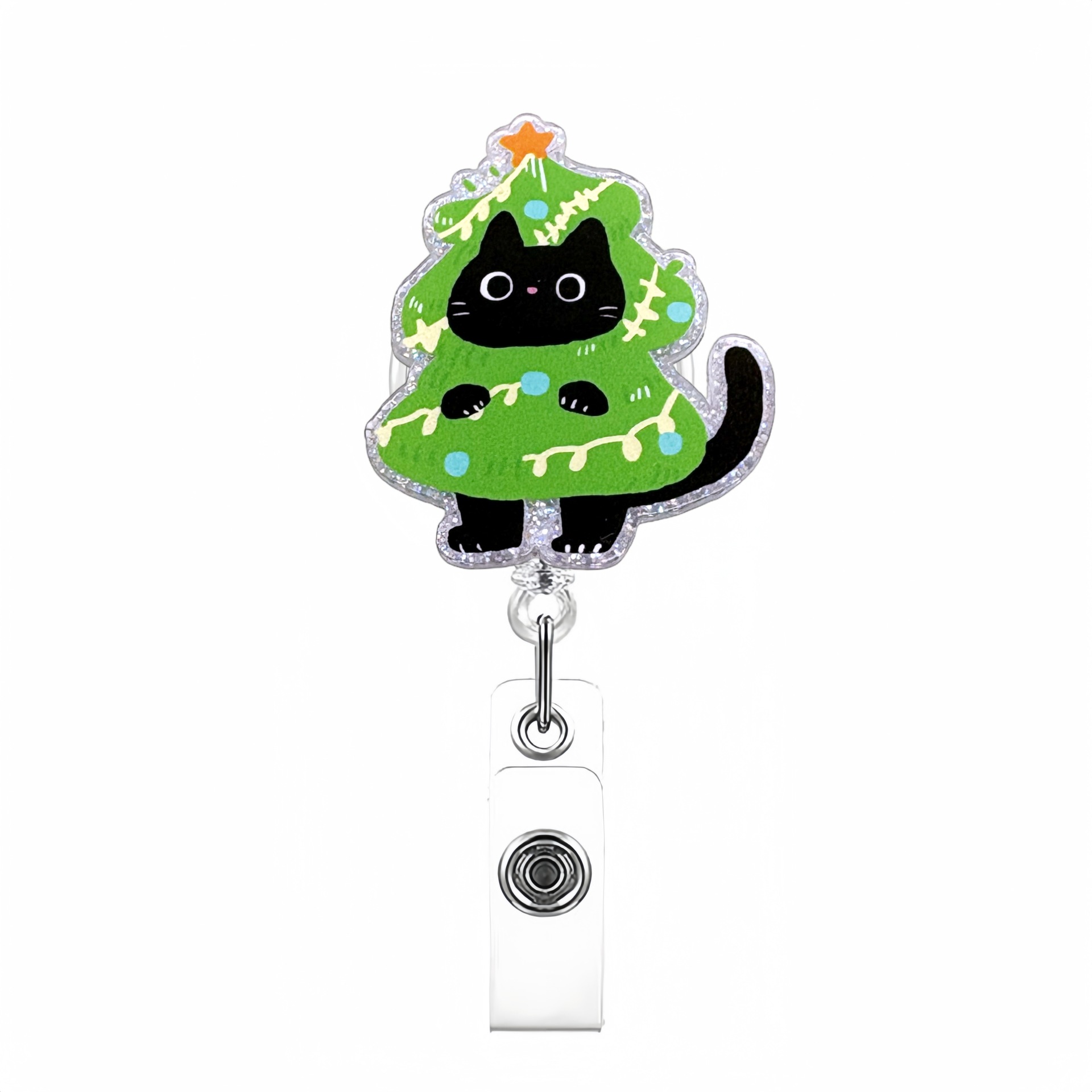 Christmas Forest Black Cat Extendable Badge Holder