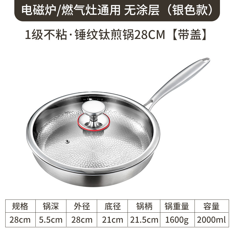 [without pot cover] 28cm uncoated hammered texture titanium-enhanced non-stick frying pan