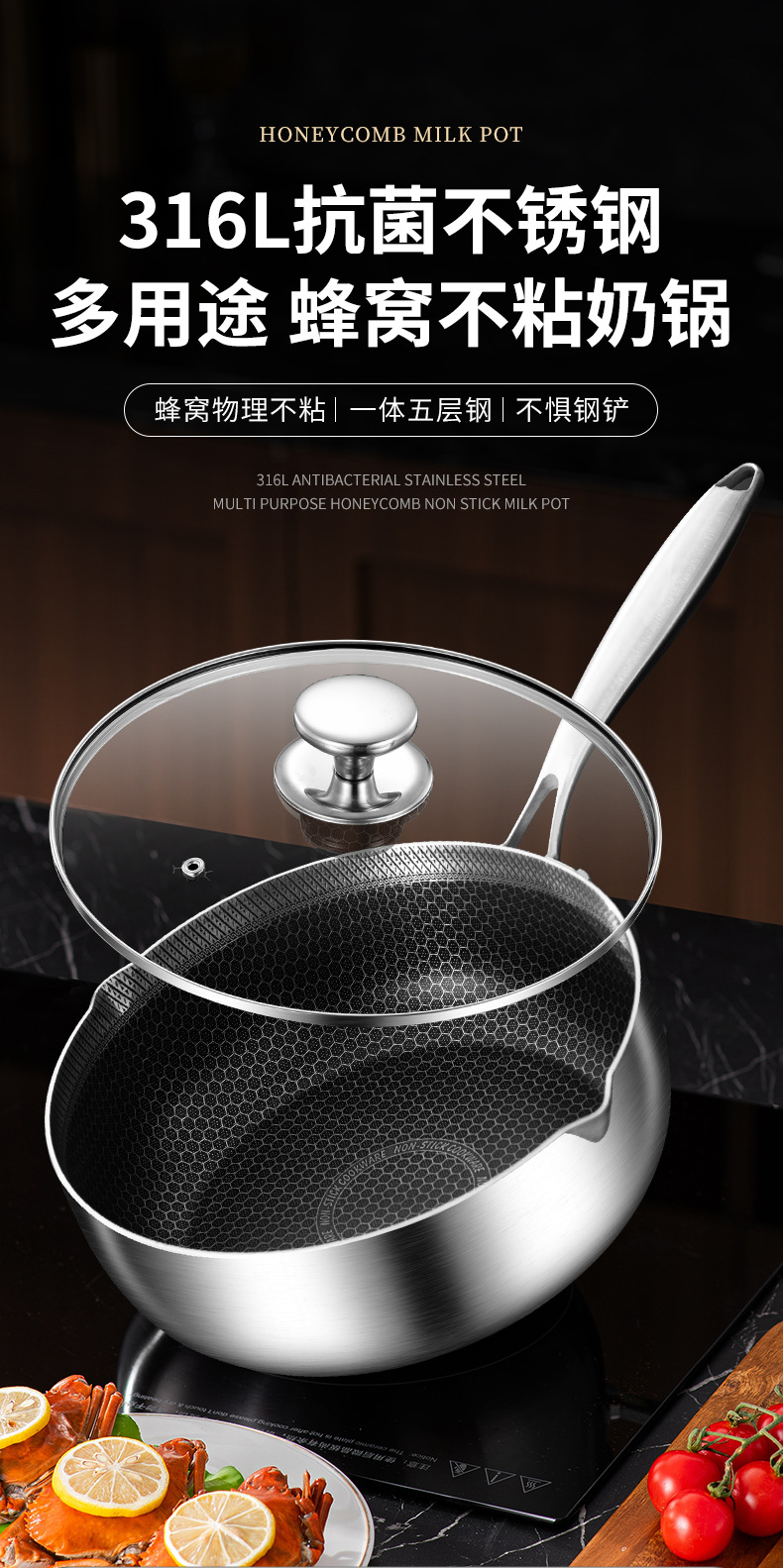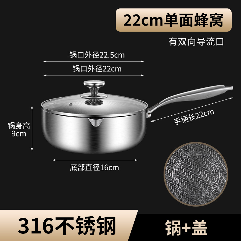 22cm single-sided honeycomb milk pot [with pot lid] 316 material