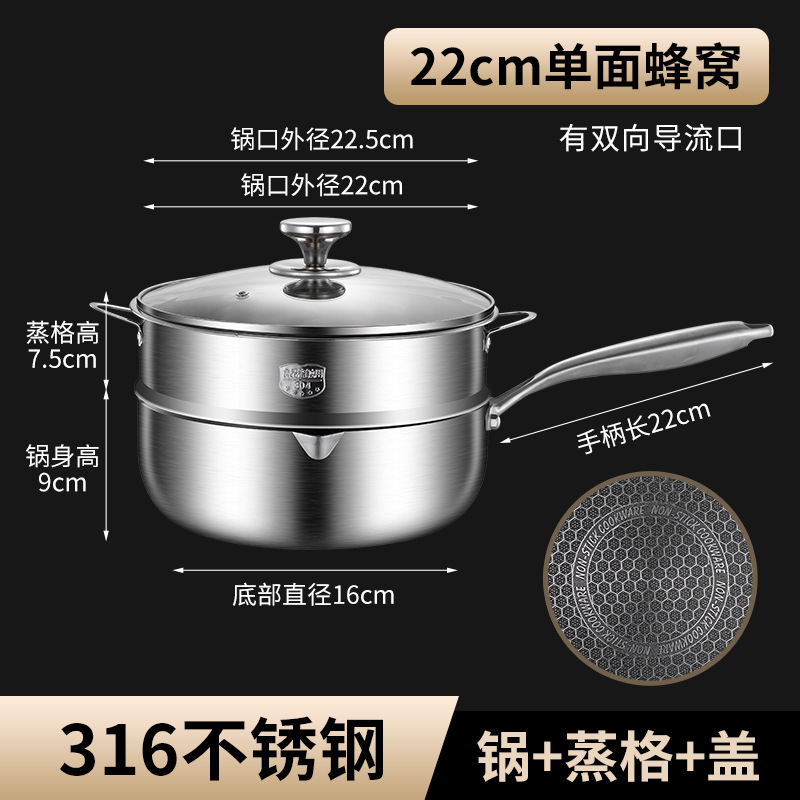 22cm double-sided honeycomb milk pot [with steaming rack] 316 material