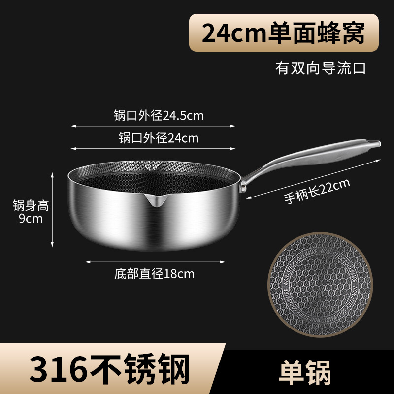 24cm single-sided honeycomb milk pot [with pot lid] 316 material