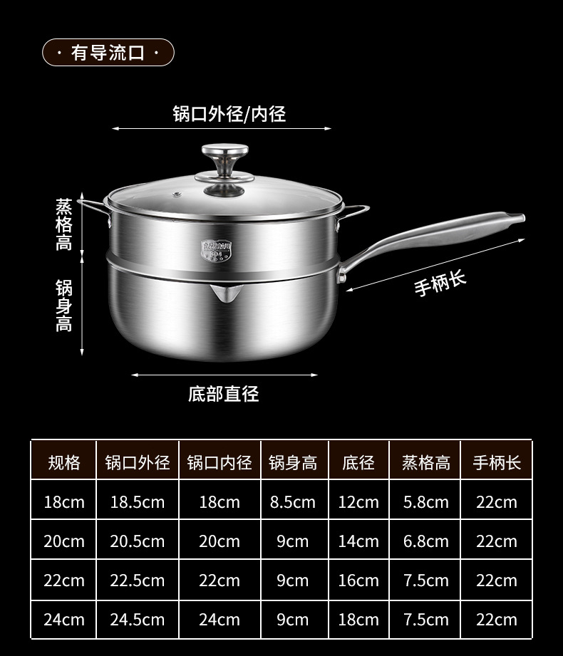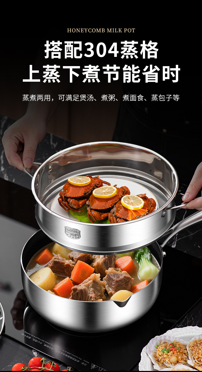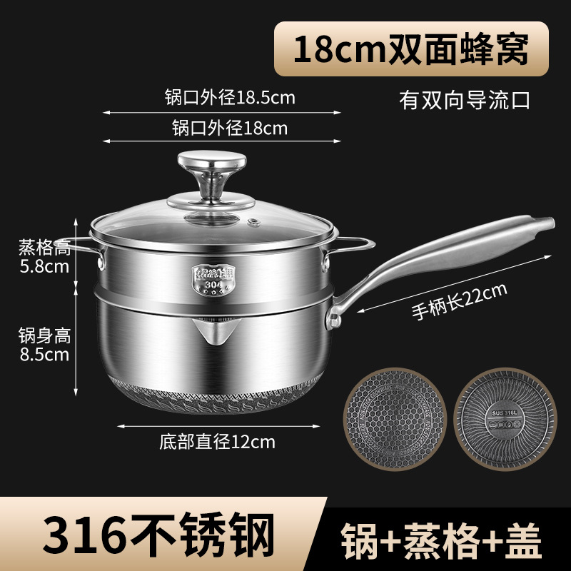 18cm double-sided honeycomb milk pot [with steaming rack] 316 material